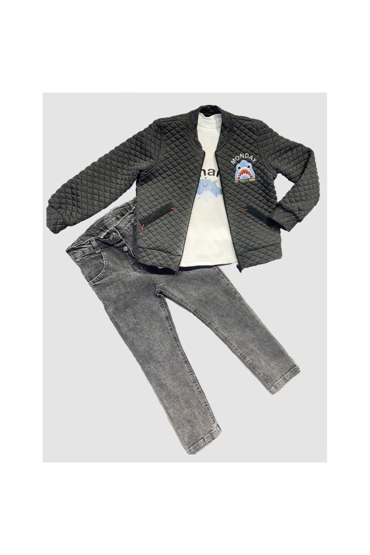 4-5-6 Years Old Boy's 3-Piece Set of Pilot Jacket with Jeans, Long Sleeve Combed Cotton Sweat