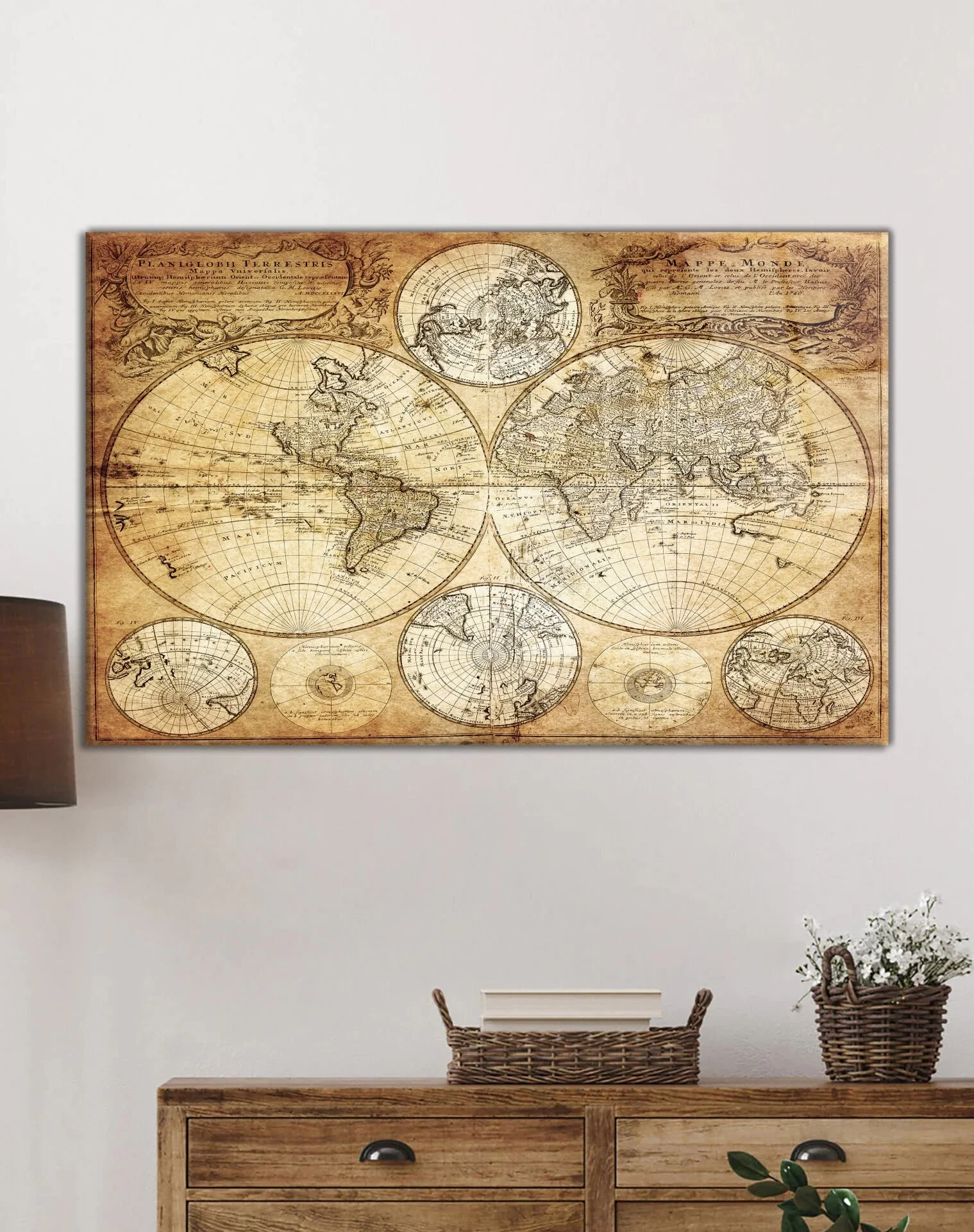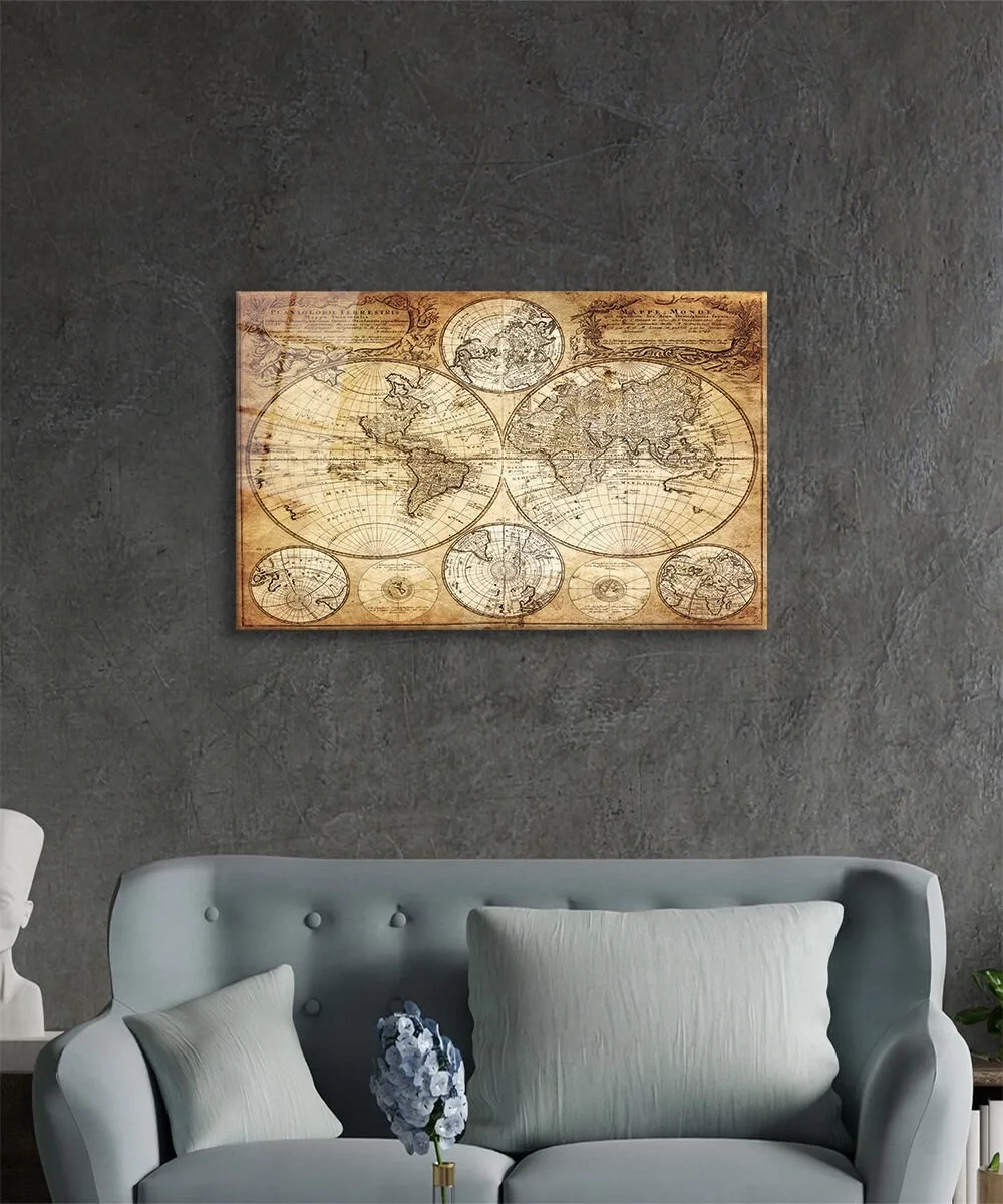 TEKNOO- Old World Map Glass Painting Home and Office Wall Decoration