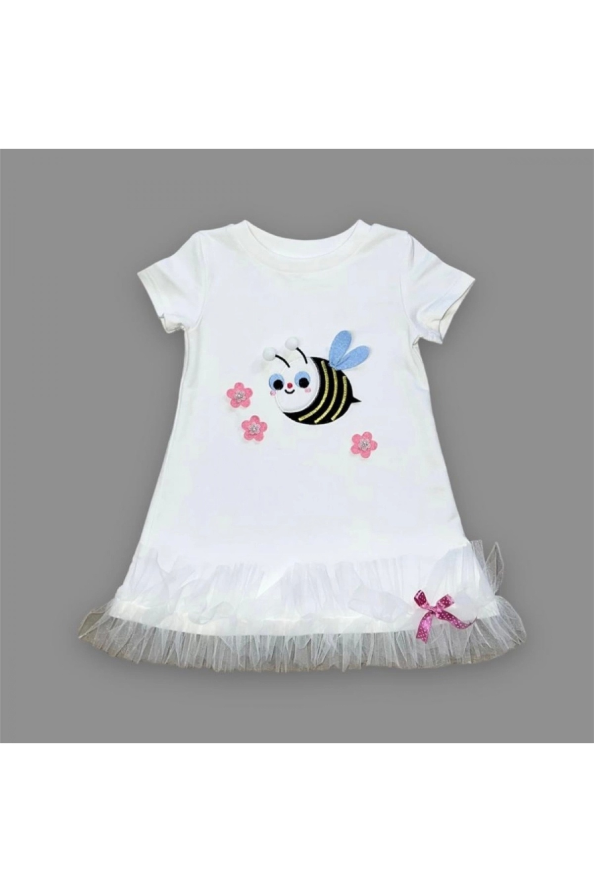 1-2-3 Years Old Bee Embroidered Skirt with Frilly Gilet Girl's Dress