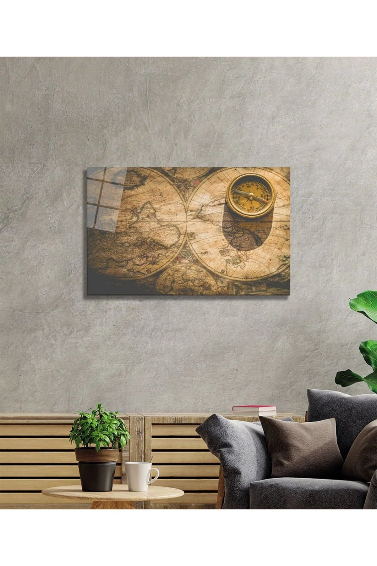 Compass Old Map Glass Painting, Home And Office Wall Decoration,
