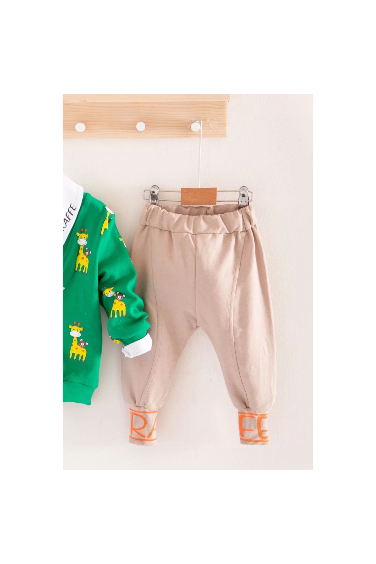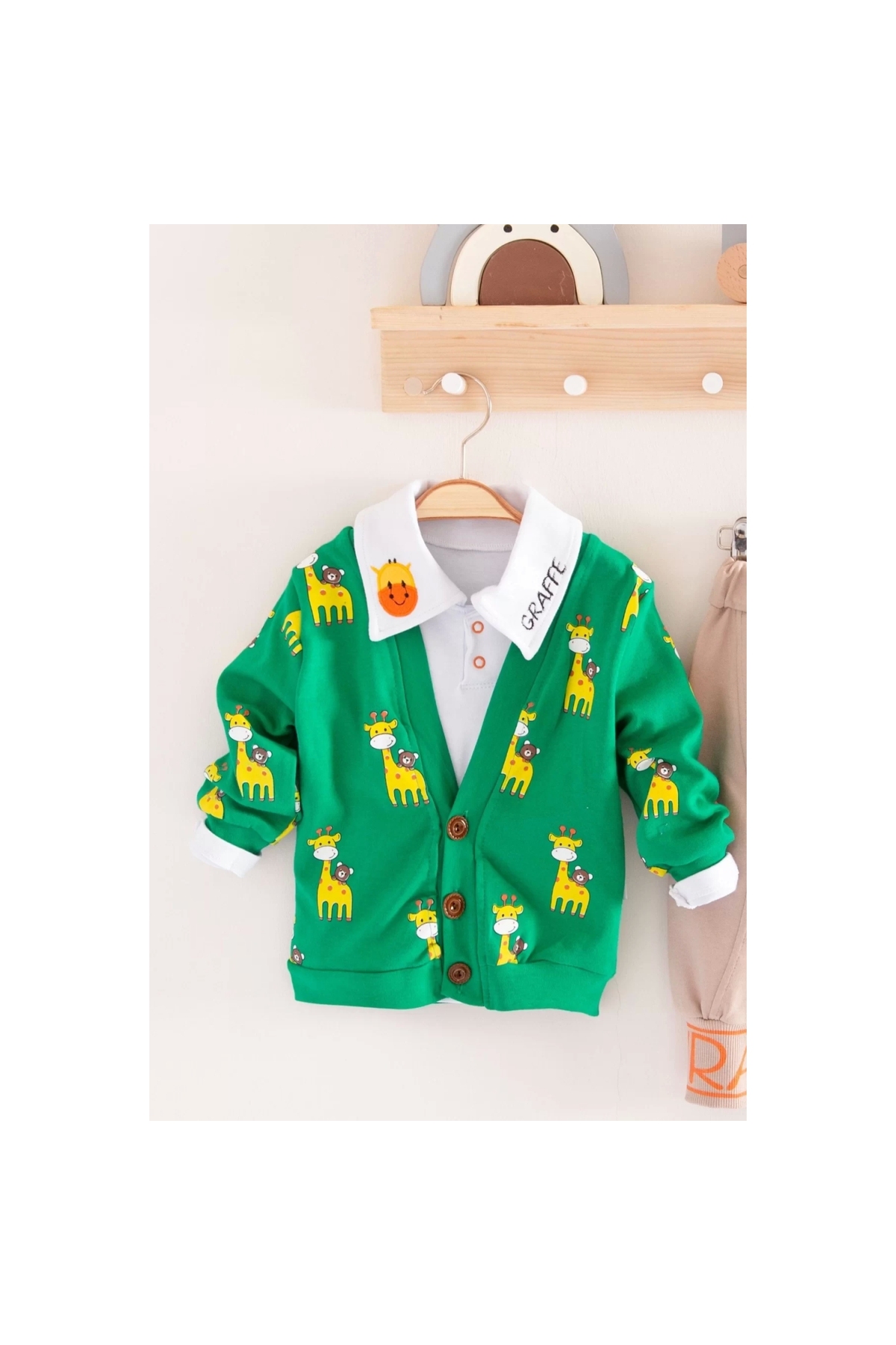 Giraffe Patterned Shirt Collar 3-Piece Baby Boy Set