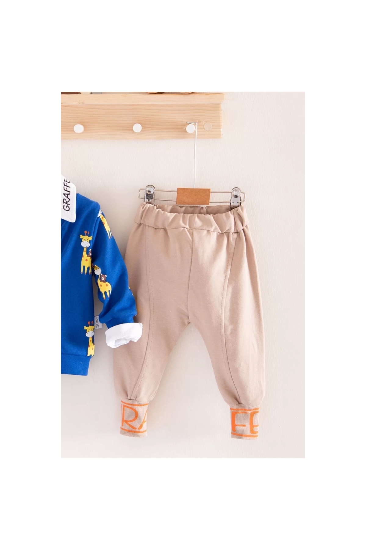 Giraffe Patterned Shirt Collar 3-Piece Baby Boy Set