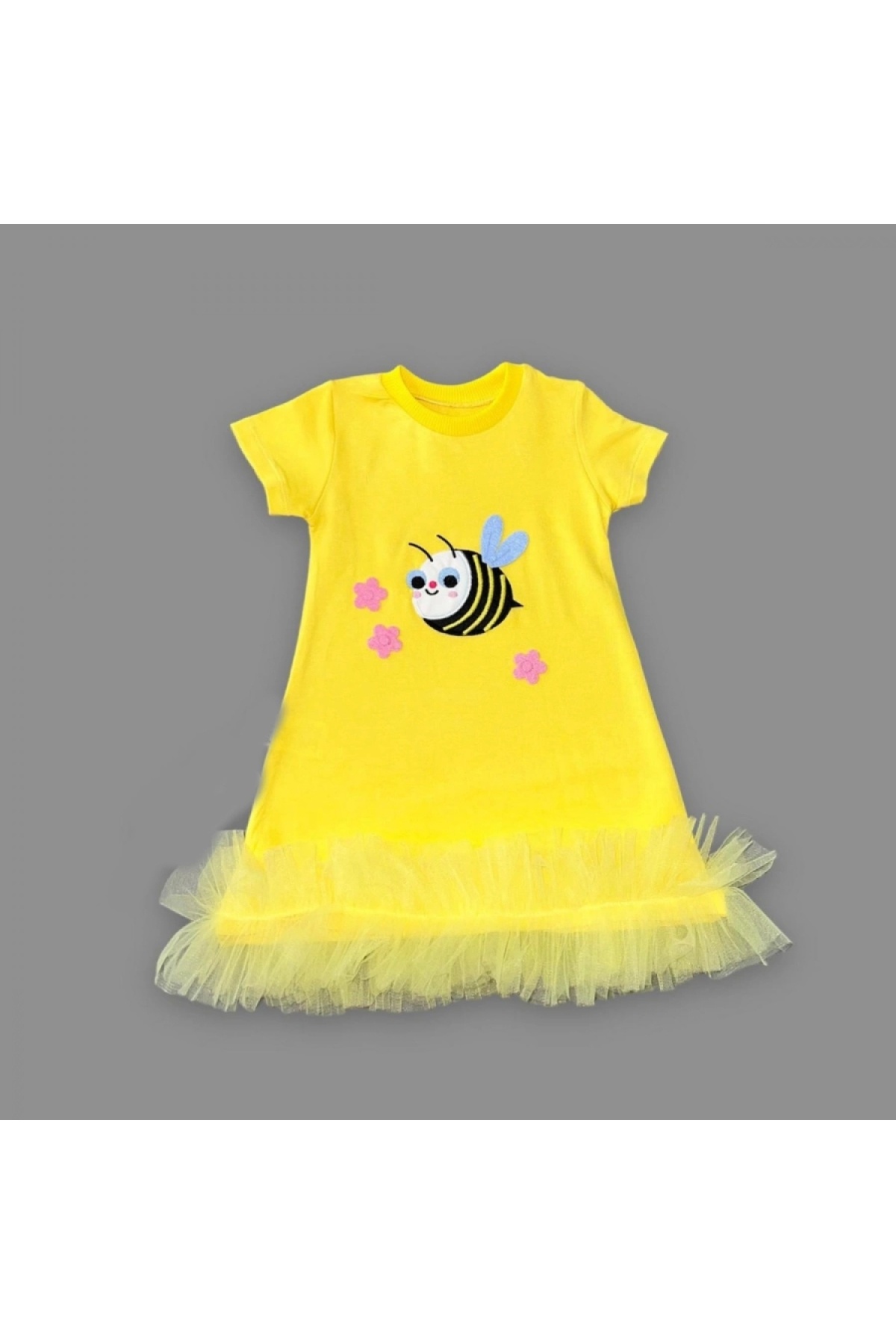1-2-3 Years Old Bee Embroidered Skirt with Frilly Gilet Girl's Dress