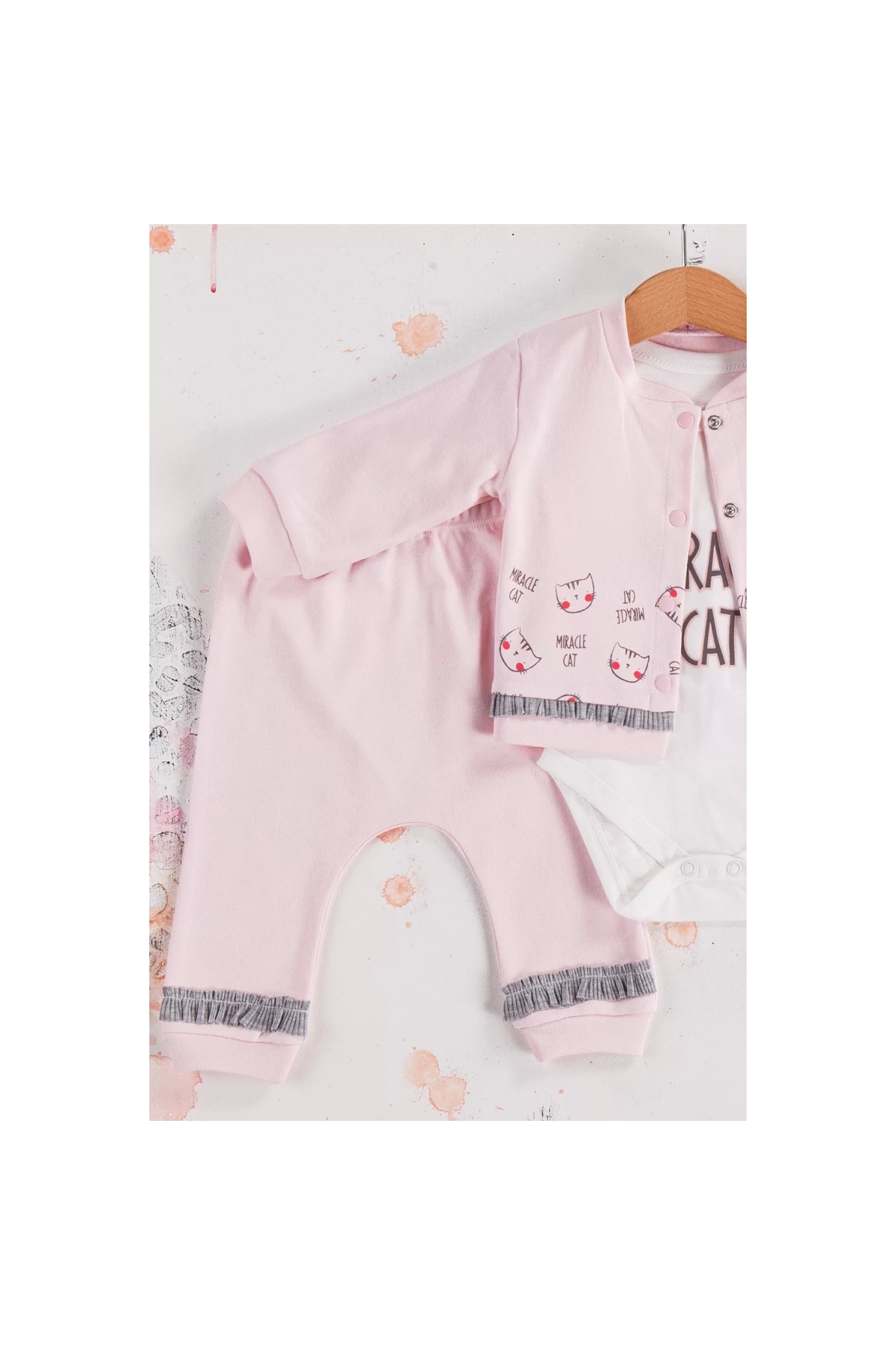 Cat Patterned 3-Piece Cardigan Baby Girl Set