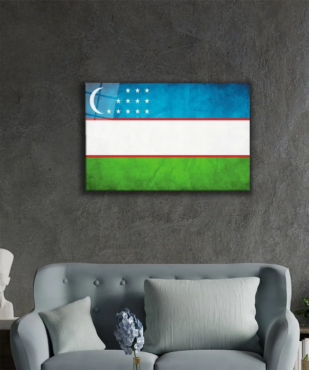 TEKNOO- Uzbekistan Flag Glass Painting Uzbekistan Flag