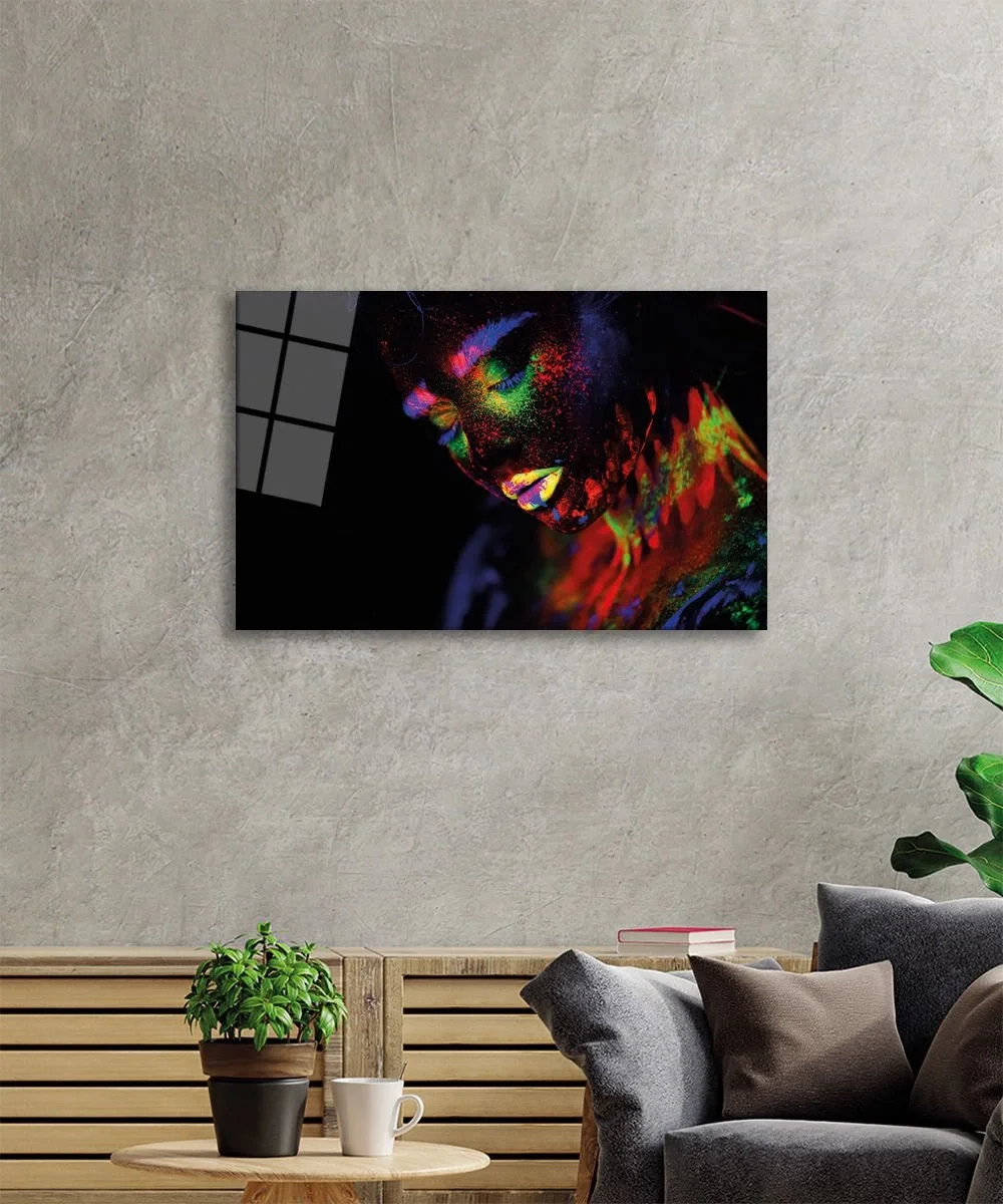 TEKNOO- Green Yellow Orange Purple Glittering Woman Glass Painting