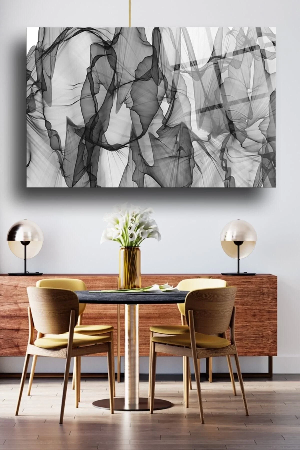 - Black and White Glass Painting - Glass Thickness: 4 mm - Glass Feature: Tempered, Laminated (Break Resistant, Unsharpened) - Technique Used: Digital Ultra Viole Printing - Box Content: Glass Painting, Steel Hanger, Nails - Our Paintings are Special Protection Equipment It is packaged in a way that will not be damaged and is on its way as soon as possible to be delivered to our valued customers.