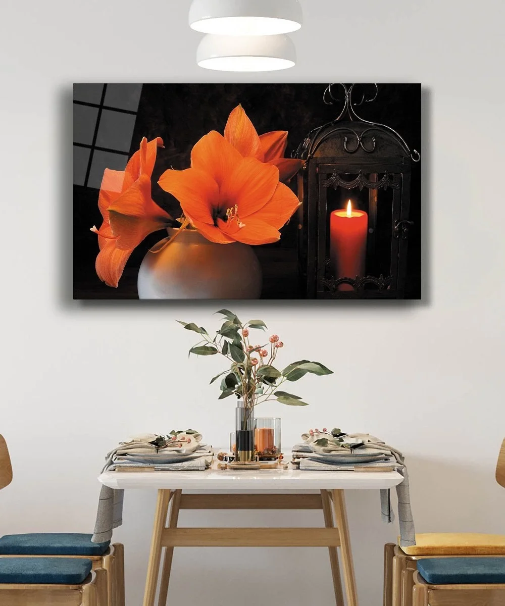 The printing of the glass painting is in the form of direct printing on the back surface of the glass. In this way, the printing remains behind the glass and you will see the high printing quality with the elegance of the glass.