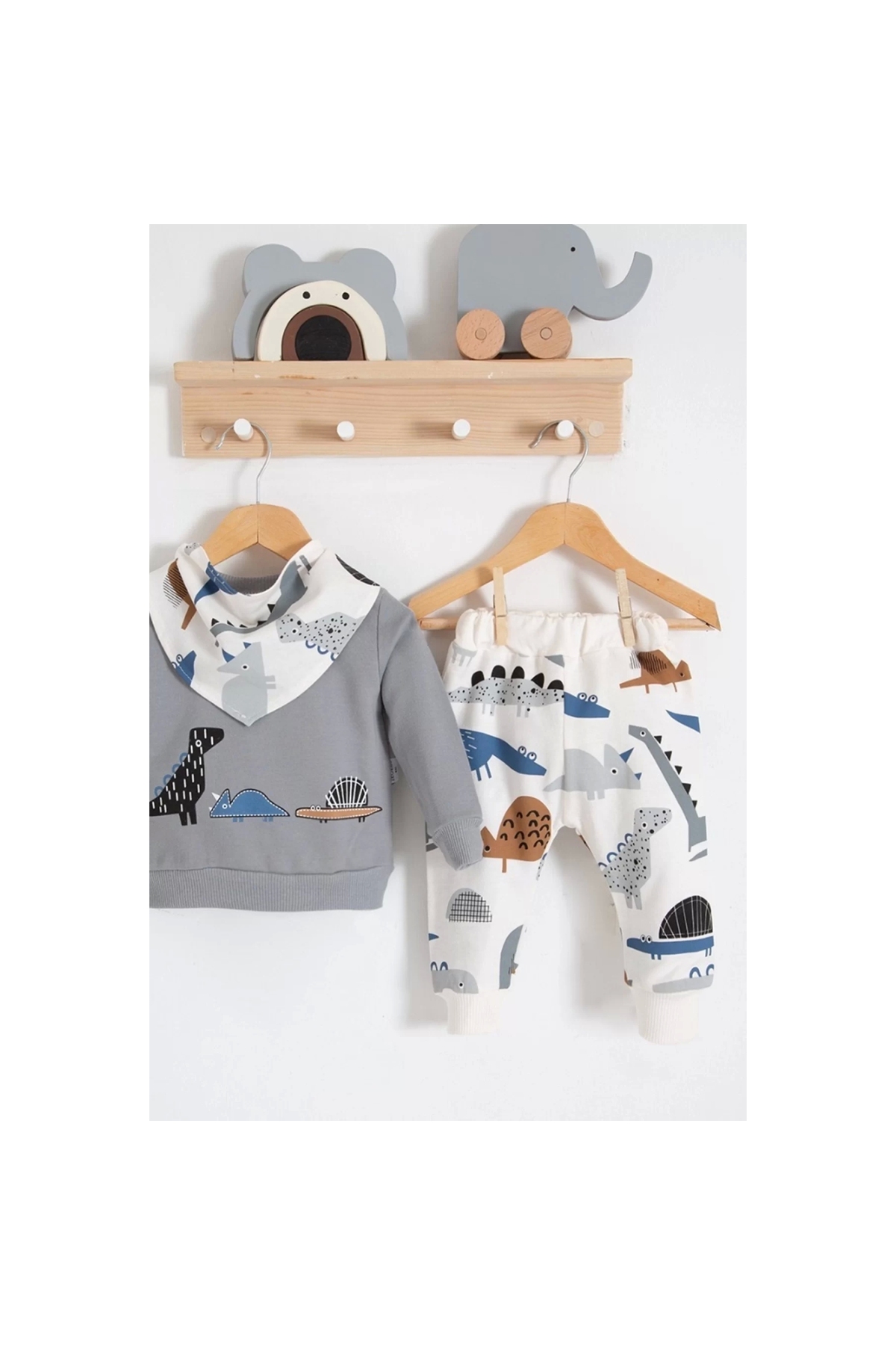 Colorful Dinosaur Patterned 2-Piece Baby Boy Set