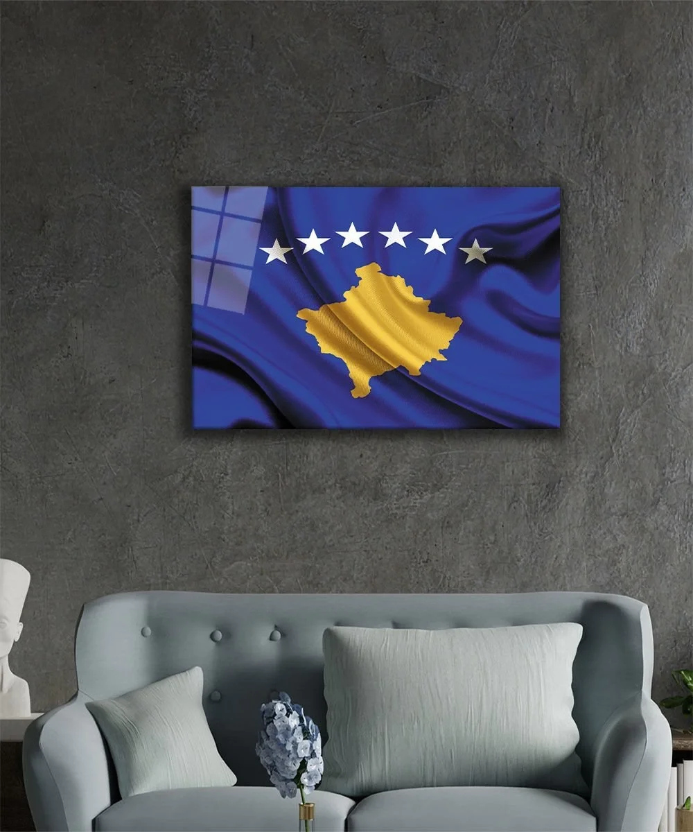 TEKNOO- Kosovo Flag Glass Painting Kosovo Flag
