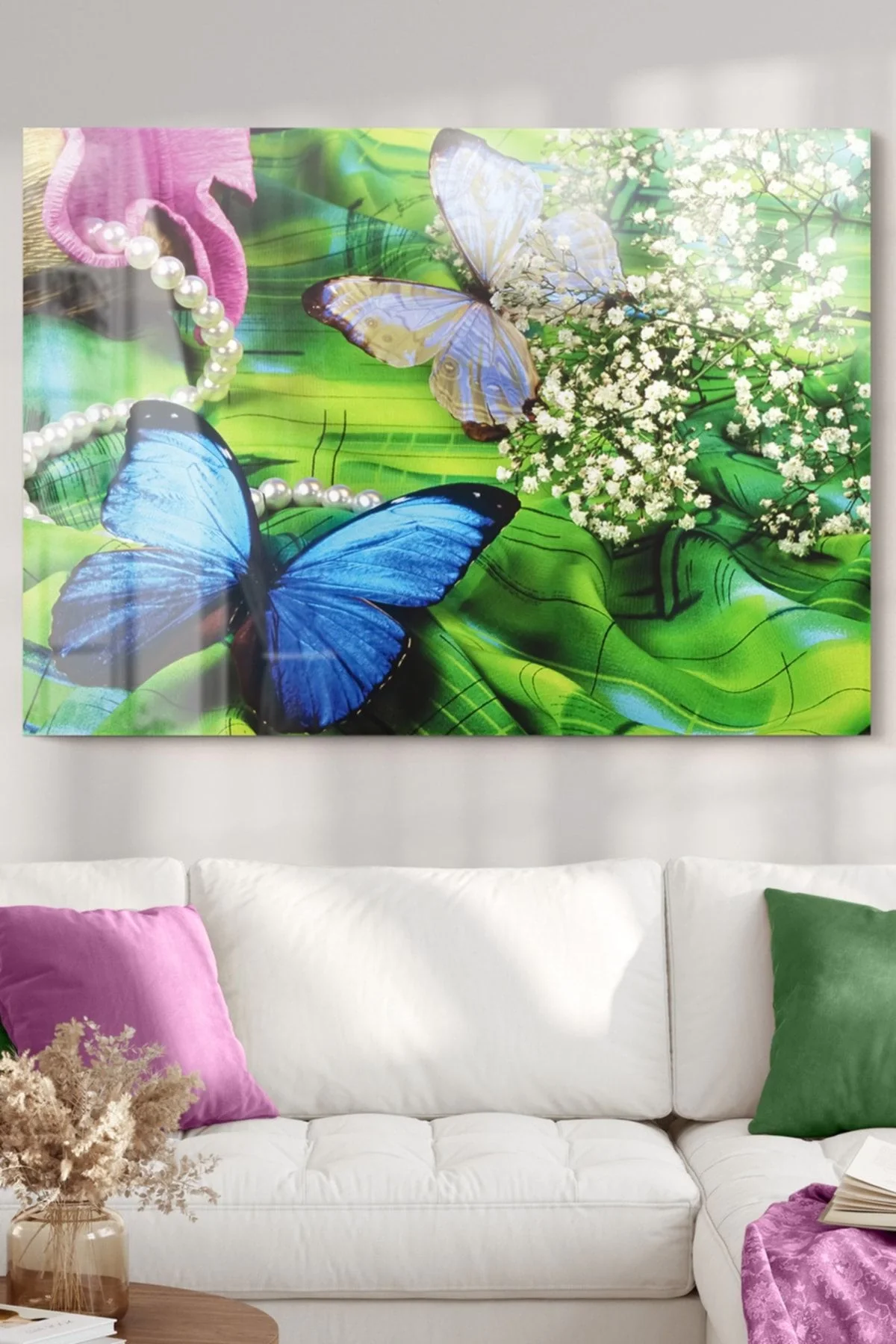 Colorful Butterfly And Pearl | Animal Themed Glass Painting | 50x70cm