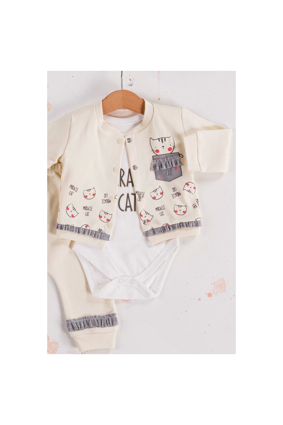 Cat Patterned 3-Piece Cardigan Baby Girl Set