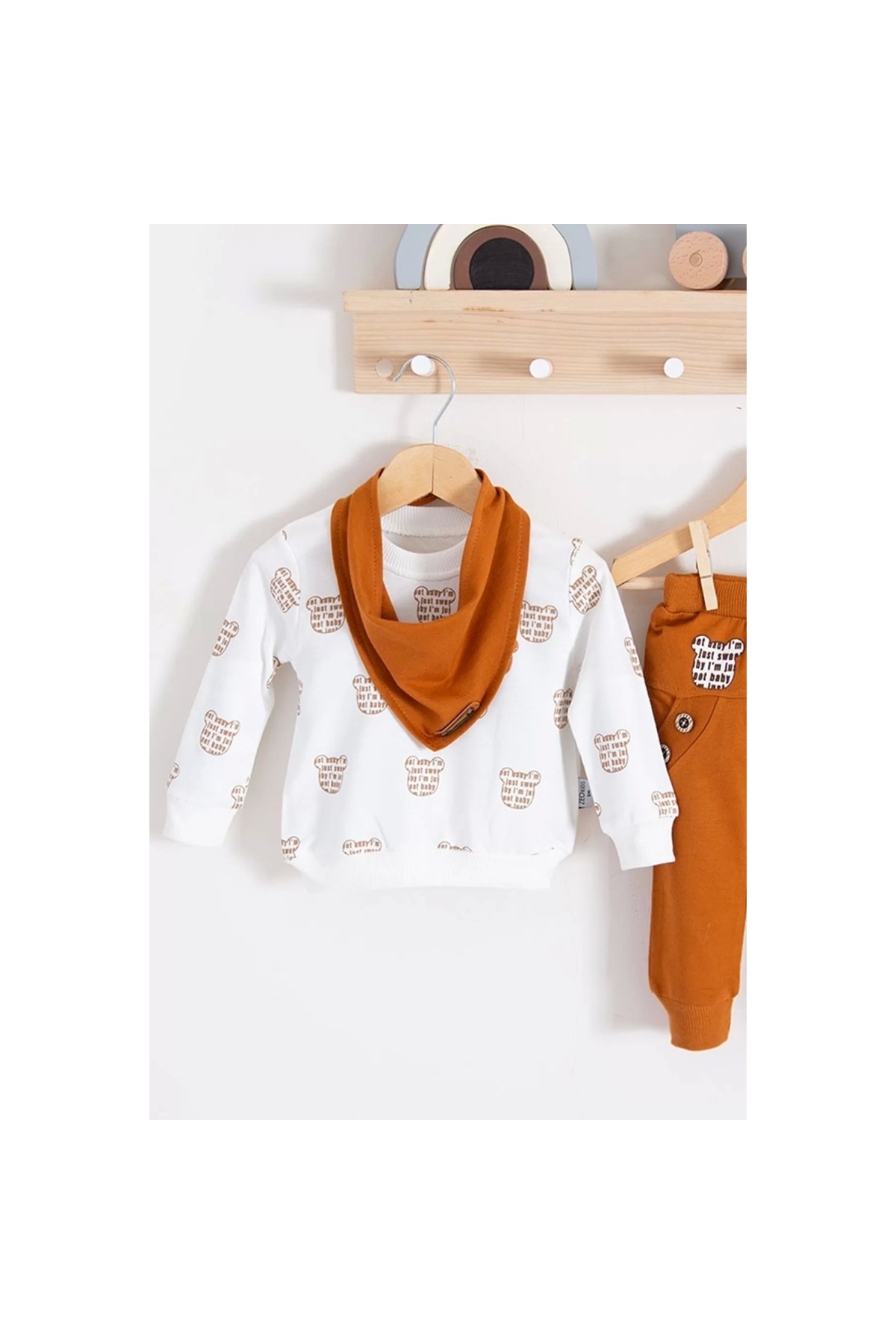 Baby Patterned 3-Piece Baby Boy Set with Scarf