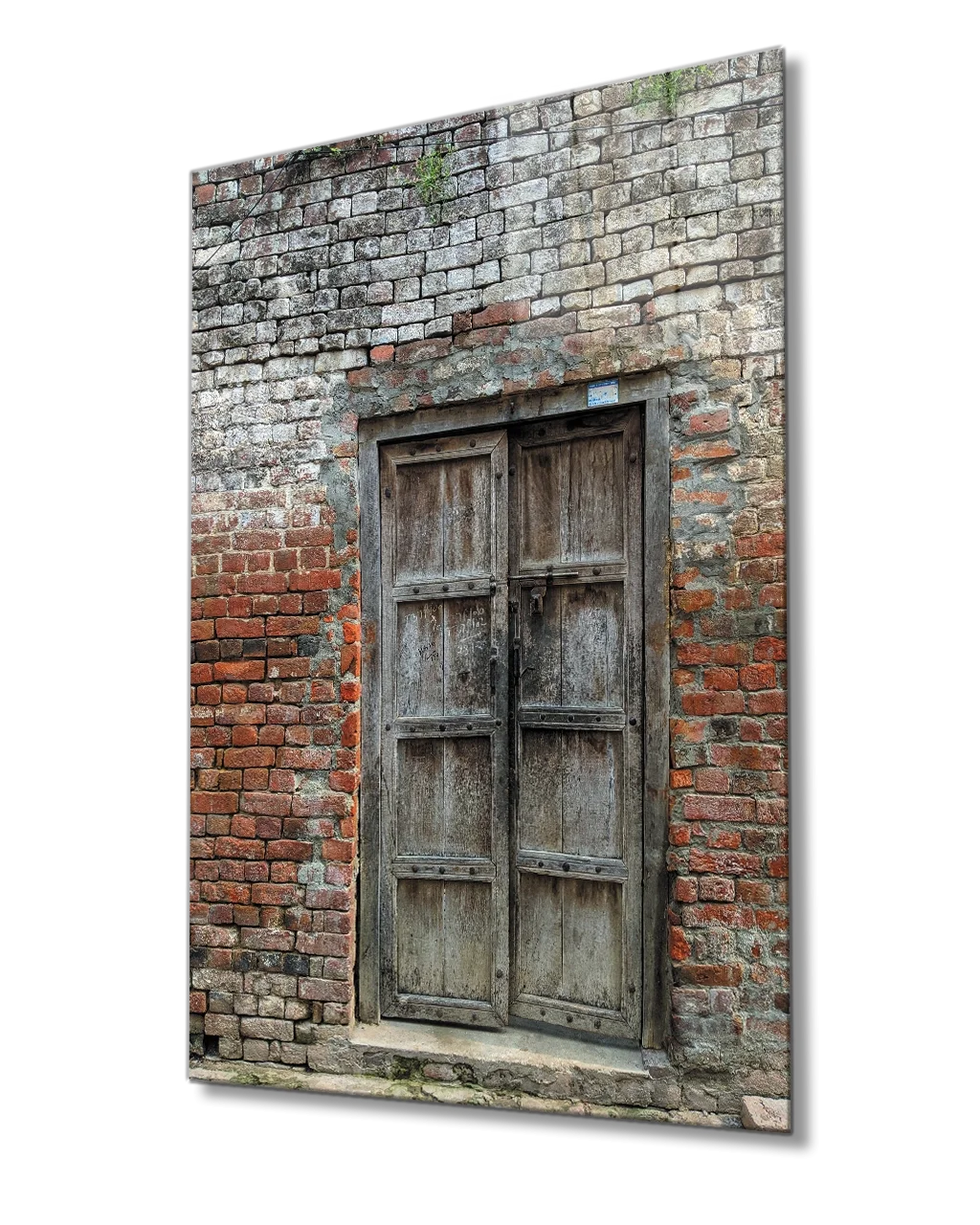 TEKNOO- Vertical Glass Painting with Stone Walls and Wooden Door Images