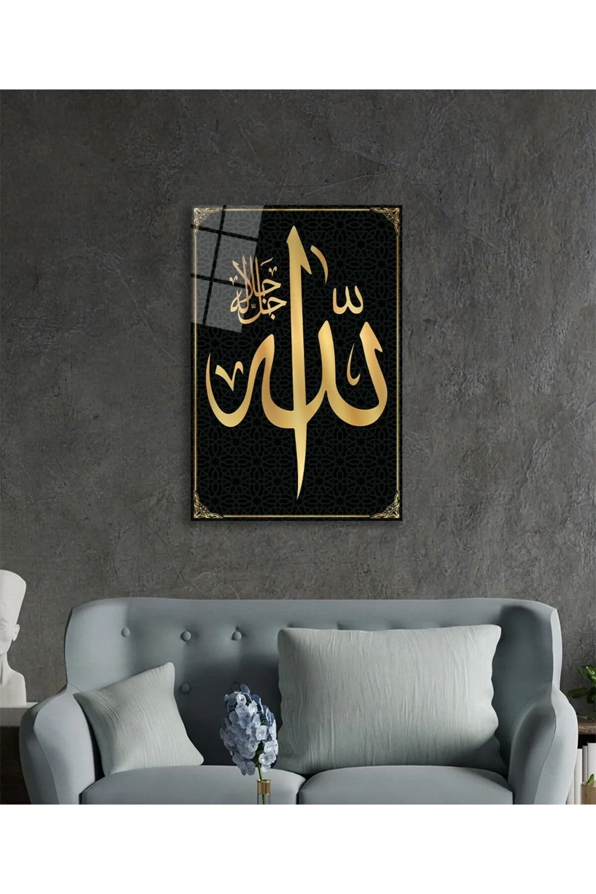 Allah Word Surah Quran Verse Religious Islamic Glass Painting, Home Office Wall Decor, Large Glass Painting