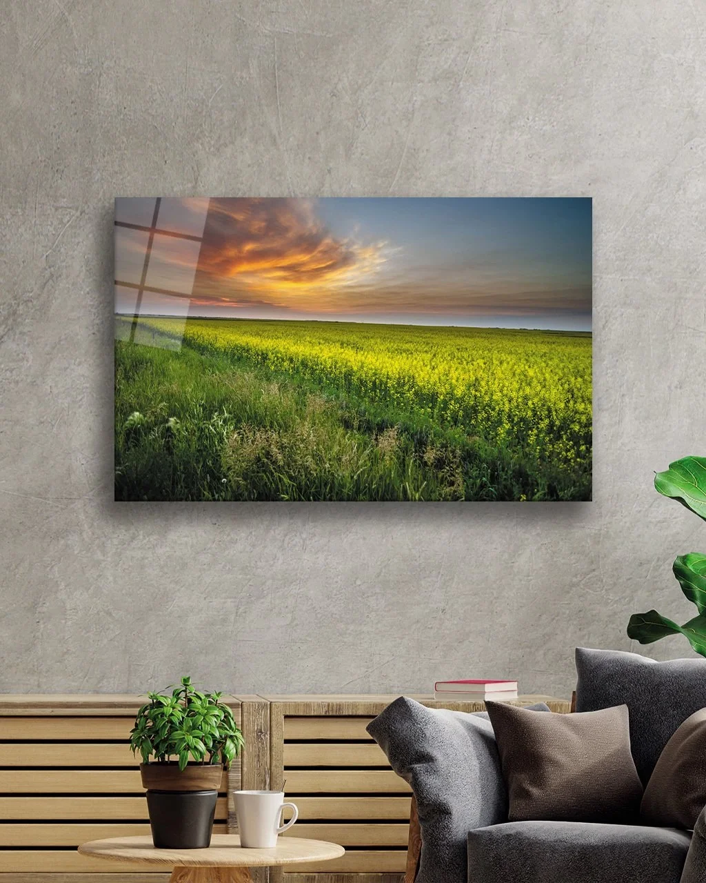 Glass Painting with View of the Flower Field at Sunset