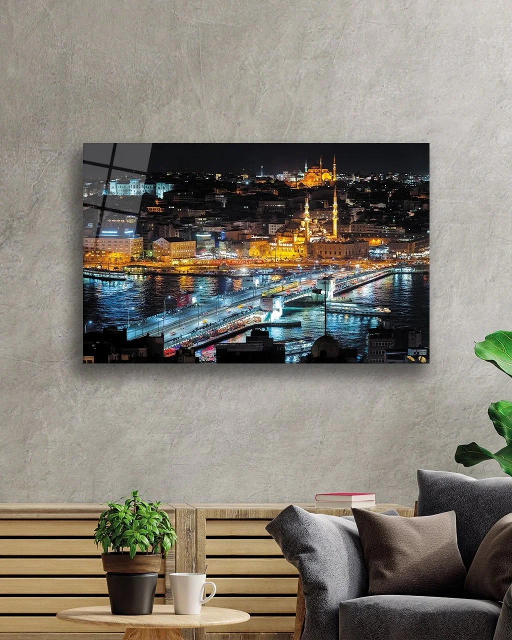 TEKNOO- Bird's Eye View of Istanbul at Night Glass Painting