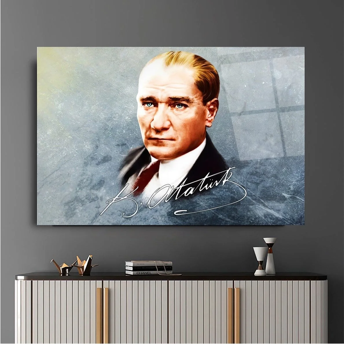 Signed Ataturk Glass Painting