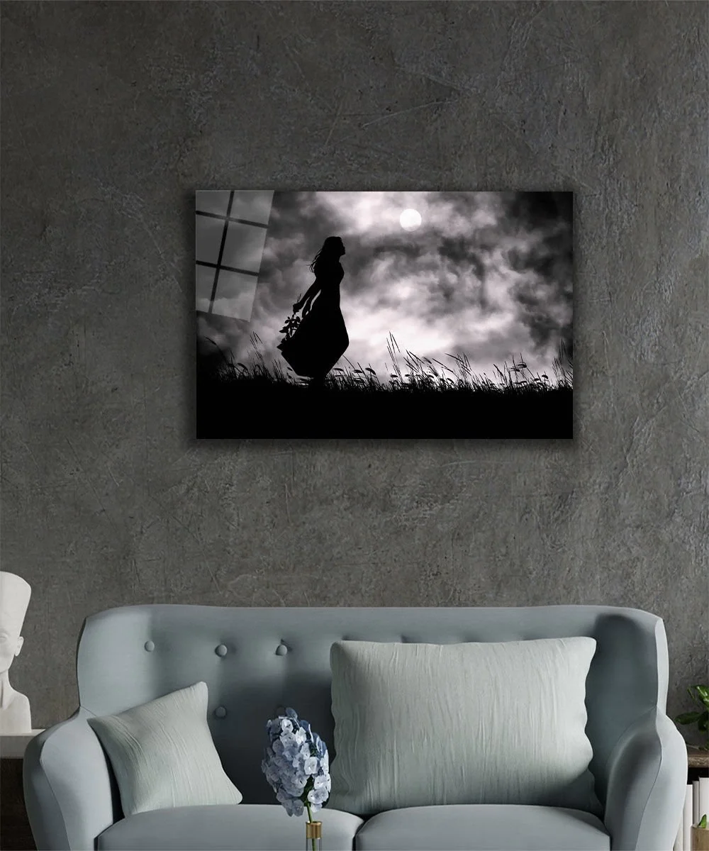 Women Silhouette Night Glass Painting Women Silhouette Night