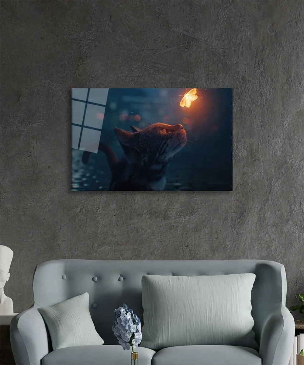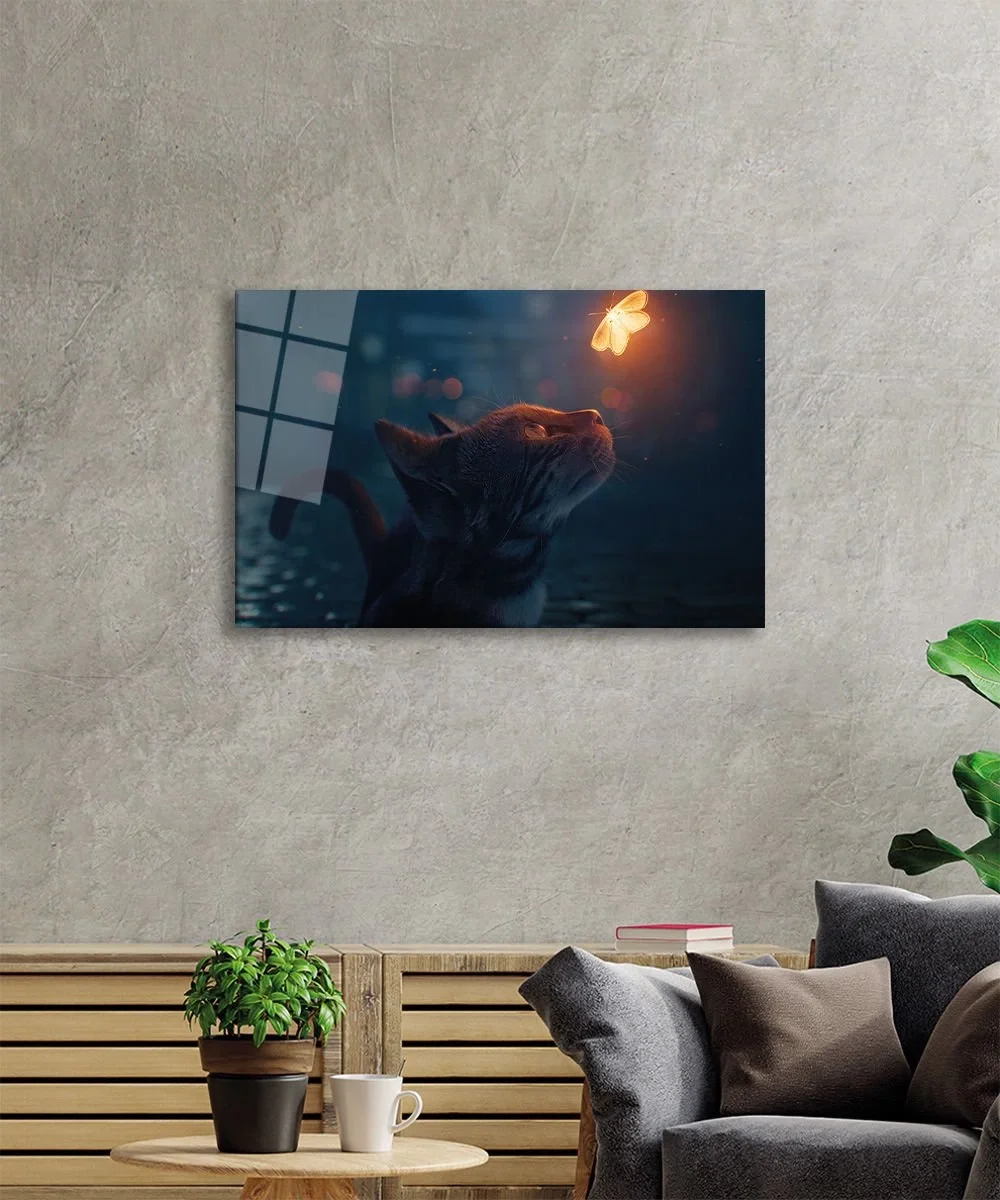 TEKNOO- Cat and Butterfly Abstract Glass Painting Home and Office Wall Decoration