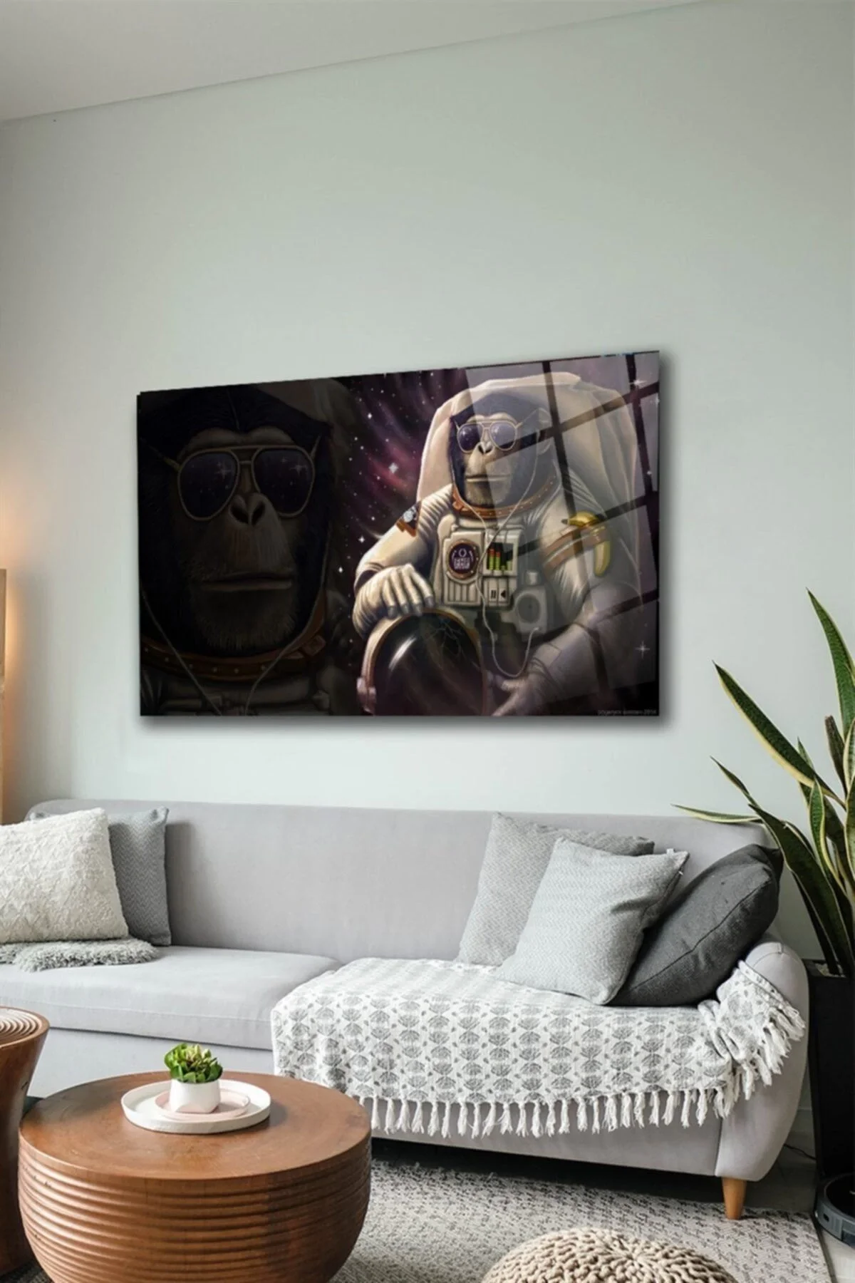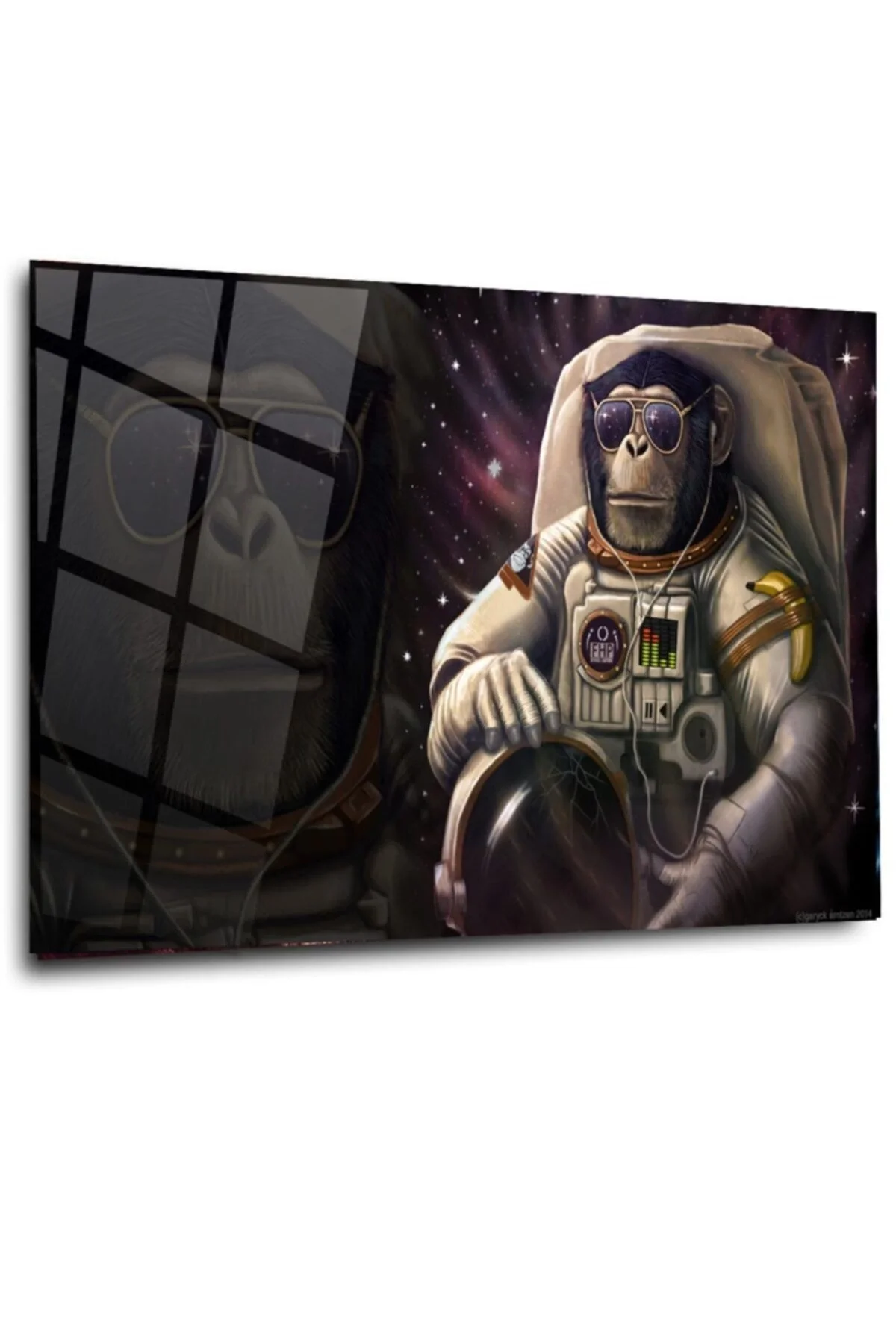 Modern Painting Astronaut Monkey Glass Painting 70 X 110 Multi Color