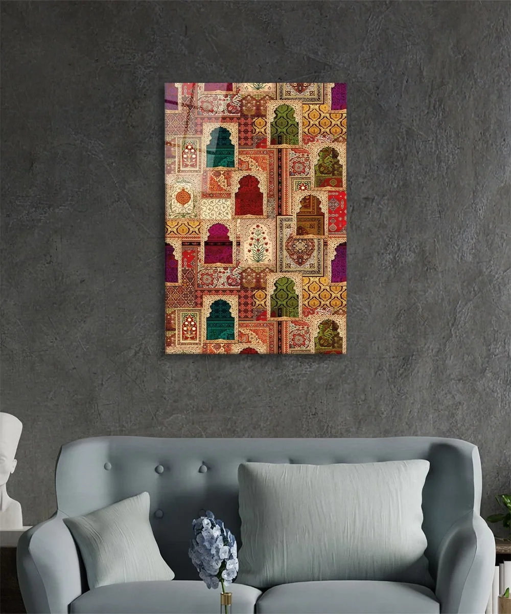Glass paintings are definitely not a form of pasting a printed media to the glass. ;  It is prepared by direct UV printing on the glass surface with a special technique