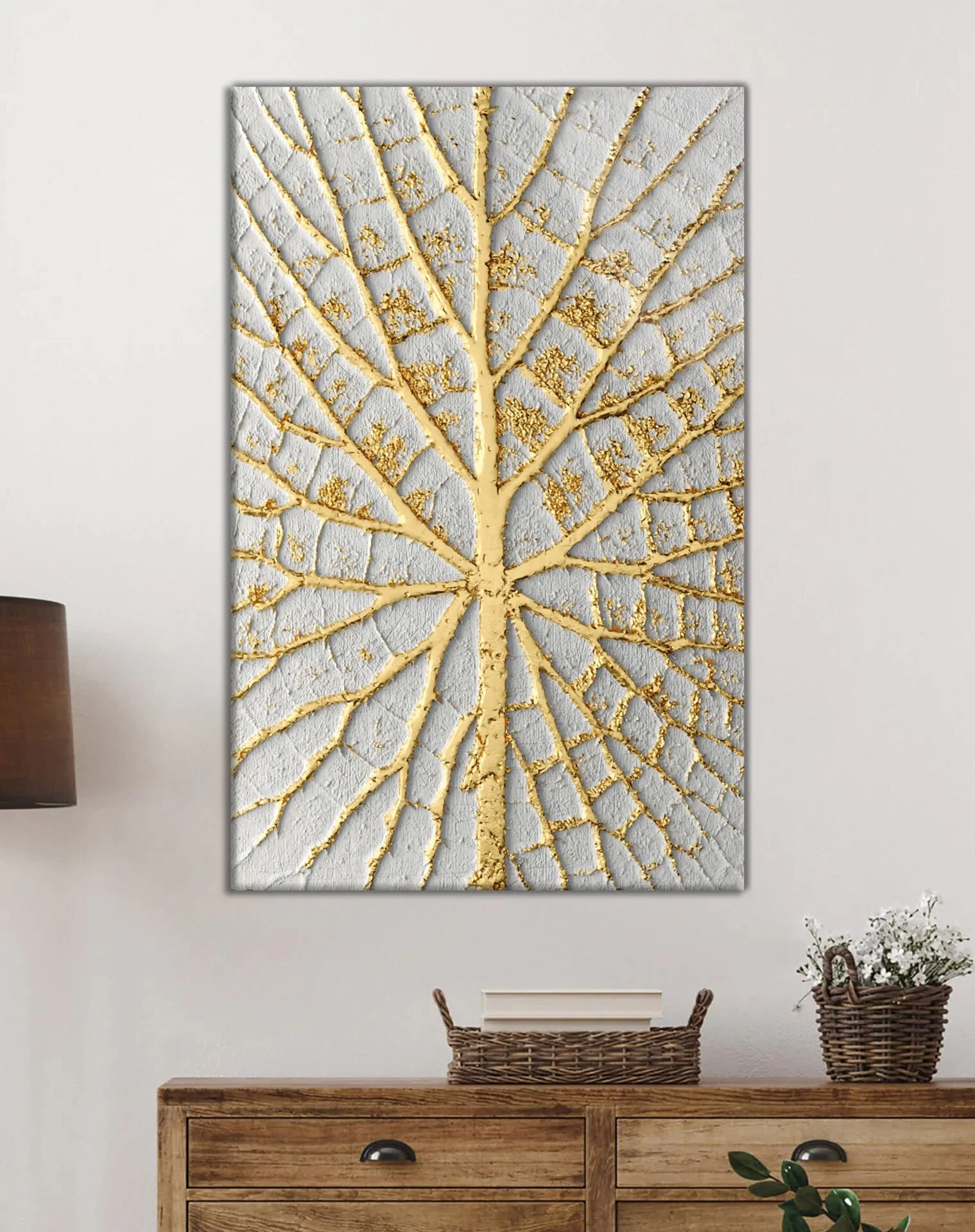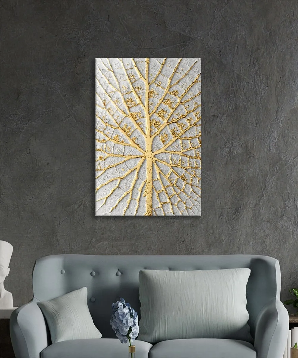 TEKNOO- Abstract White Gold Tree Glass Painting Home and Office Wall Decoration