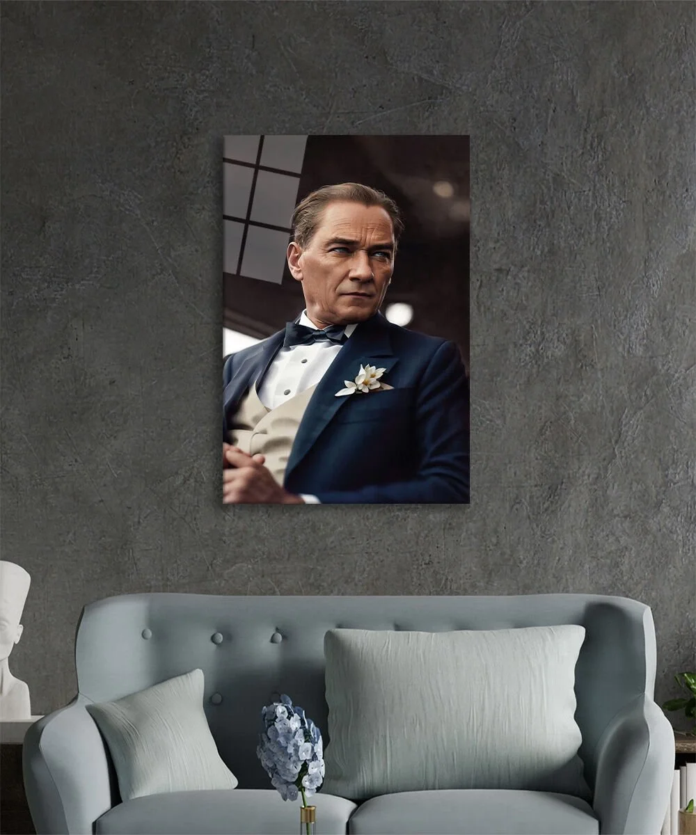 TEKNOO- Artificial Intelligence Ataturk Portrait Glass Painting Home and Office Wall Decoration