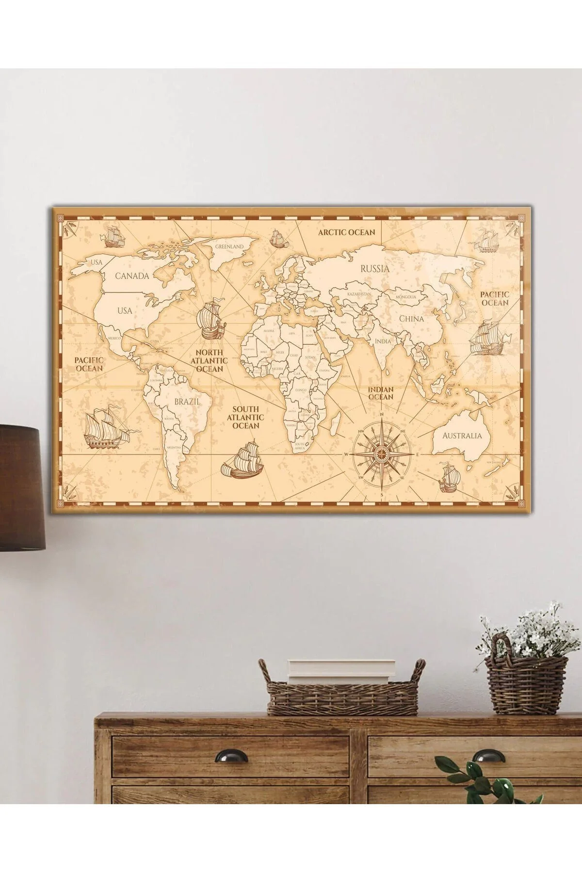 Historical World Map Glass Painting, Home And Office Wall Decoration,