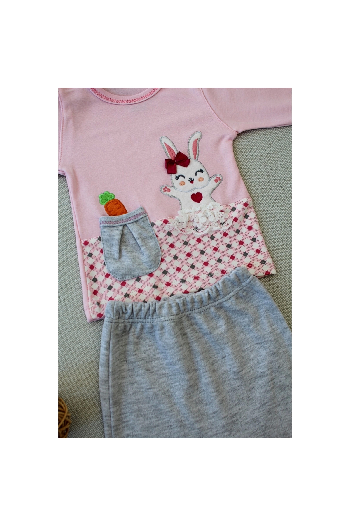 3-6 9-12 12-18 Months Carrot Rabbit Embroidered Bandana Pocket Long Sleeve Sweat 3 Pack Baby Girl Bag