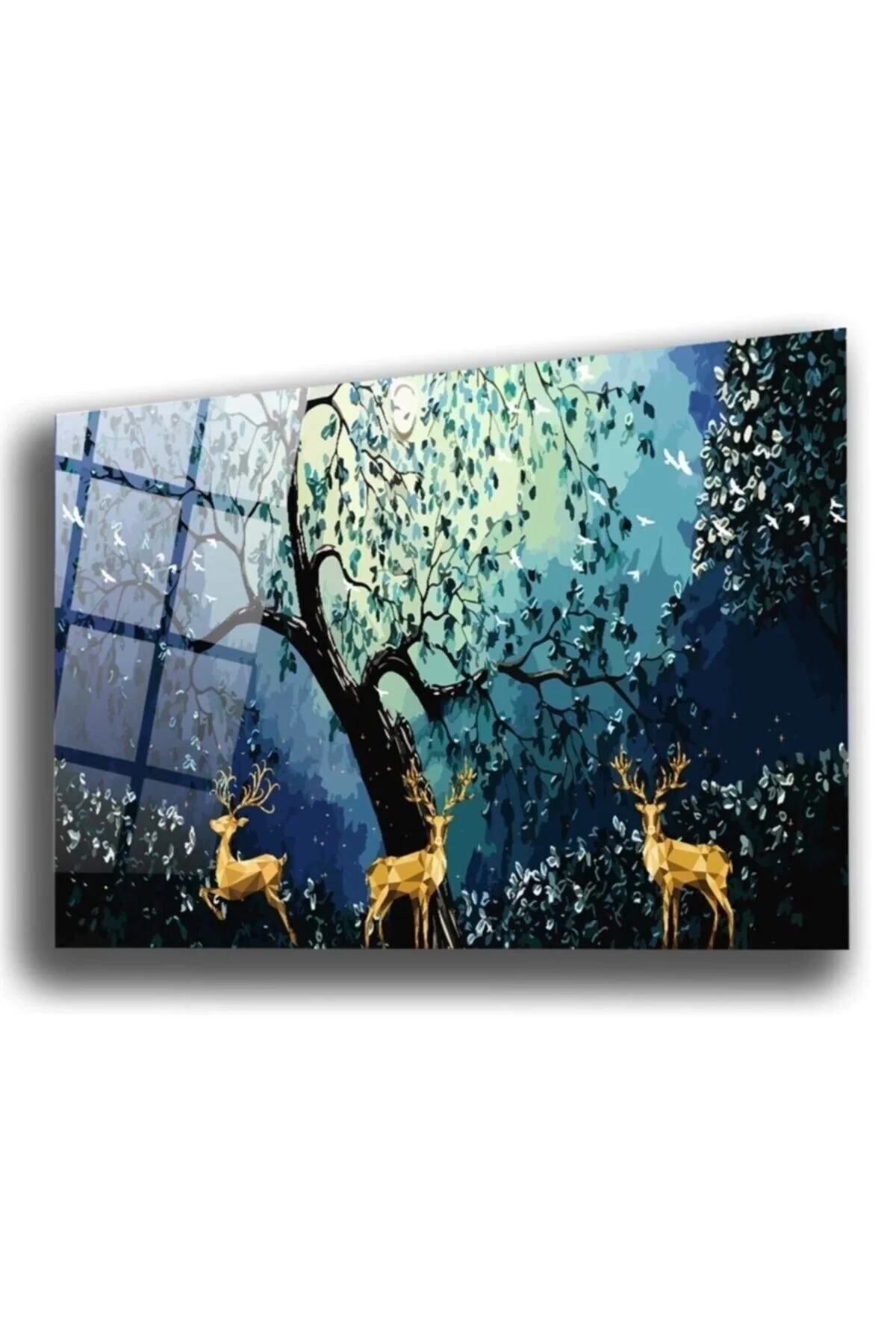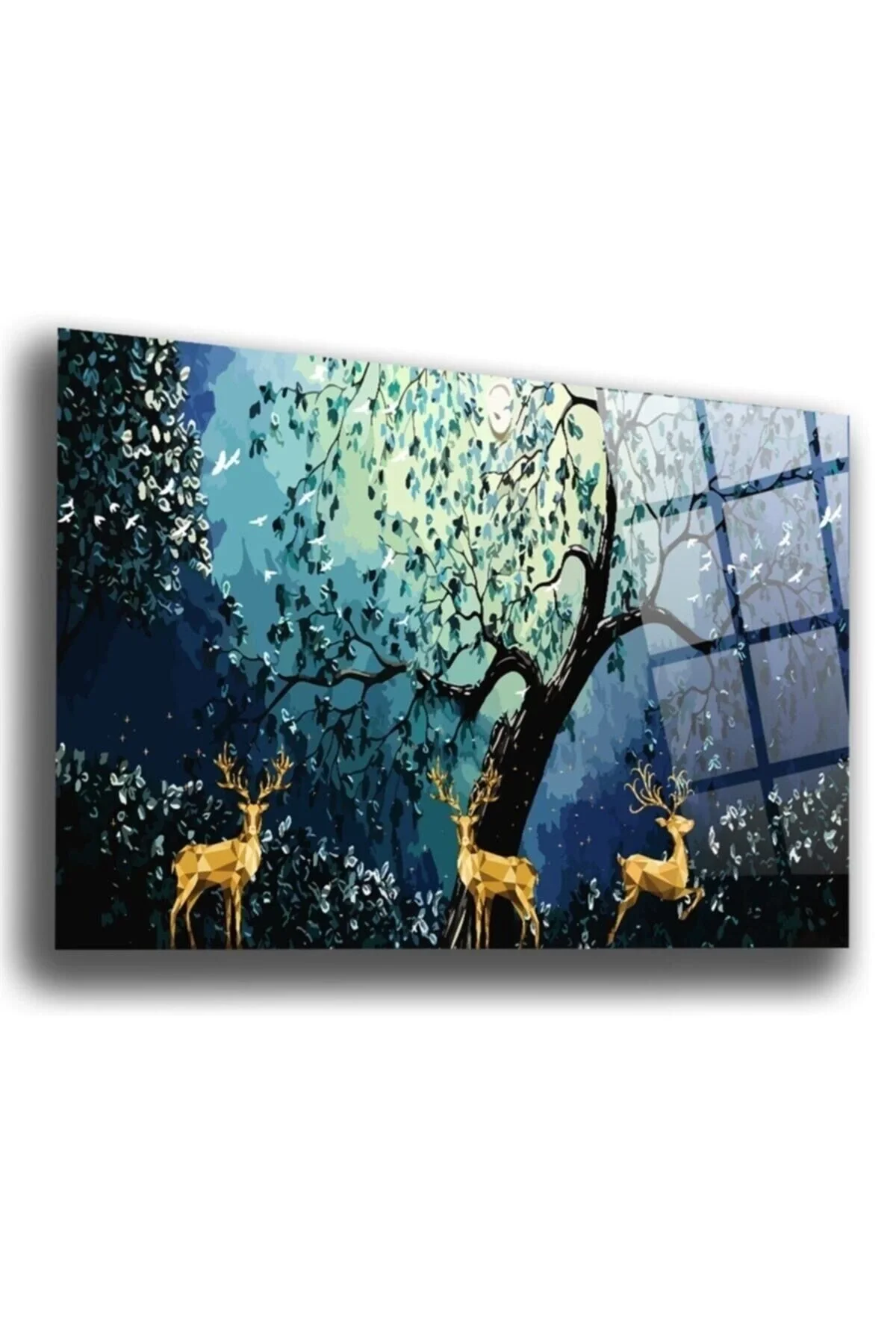 Golden Deers Glass Painting Wall Decoration, Home Decoration, Wall Painting, Home Gift We are working to increase our diversity and offer you more options with our painting models that are renewed every day. ; Our products are produced in our own factory and made with the highest level printing machines; Our products are produced on first class 4mm tempered glass (10 times more durable than normal glass) and edge-polished glass; We have hassle-free and unconditional return processes. ; It is printed with state-of-the-art UV machines with high resolution FHD quality. ; You can easily hang our paintings, which are extremely easy to assemble, on your wall with the special steel hanging bracket attached to the back. ; Our products are printed on the back surface of the glass, allowing easy cleaning of the front surface. ; YOU CAN CHOOSE IT FOR HOME GIFT, OFFICE GIFT, AND FOR YOUR OWN USE. OUR PRODUCTS ARE SHIPPED IN A BOX. The packaging is reliable and any breakage that may occur during shipping, for whatever reason, is under our company's warranty. ; You can contact us for your special printing requests. ;