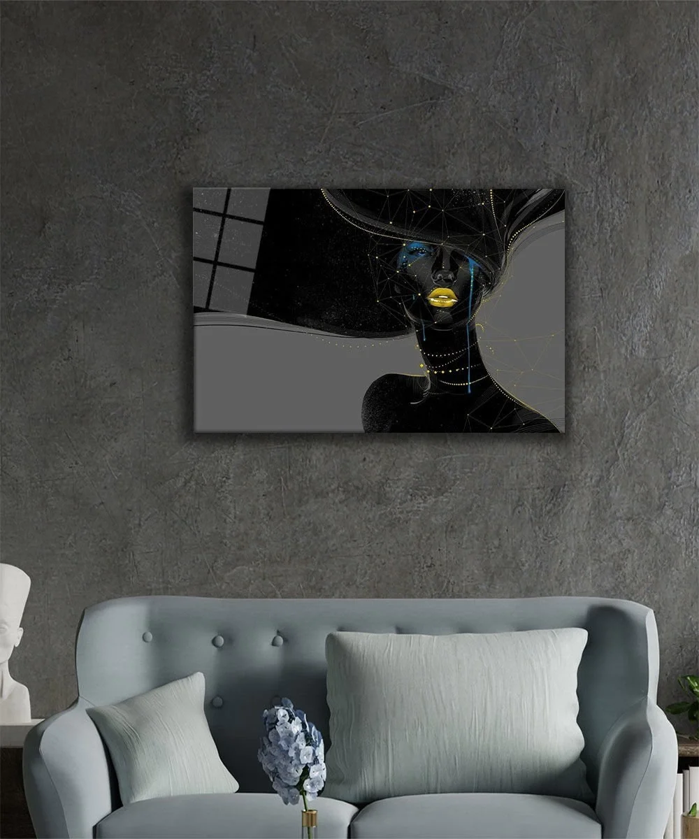 Women Black Stars and Hair Glass Painting, Women Black Star Hair