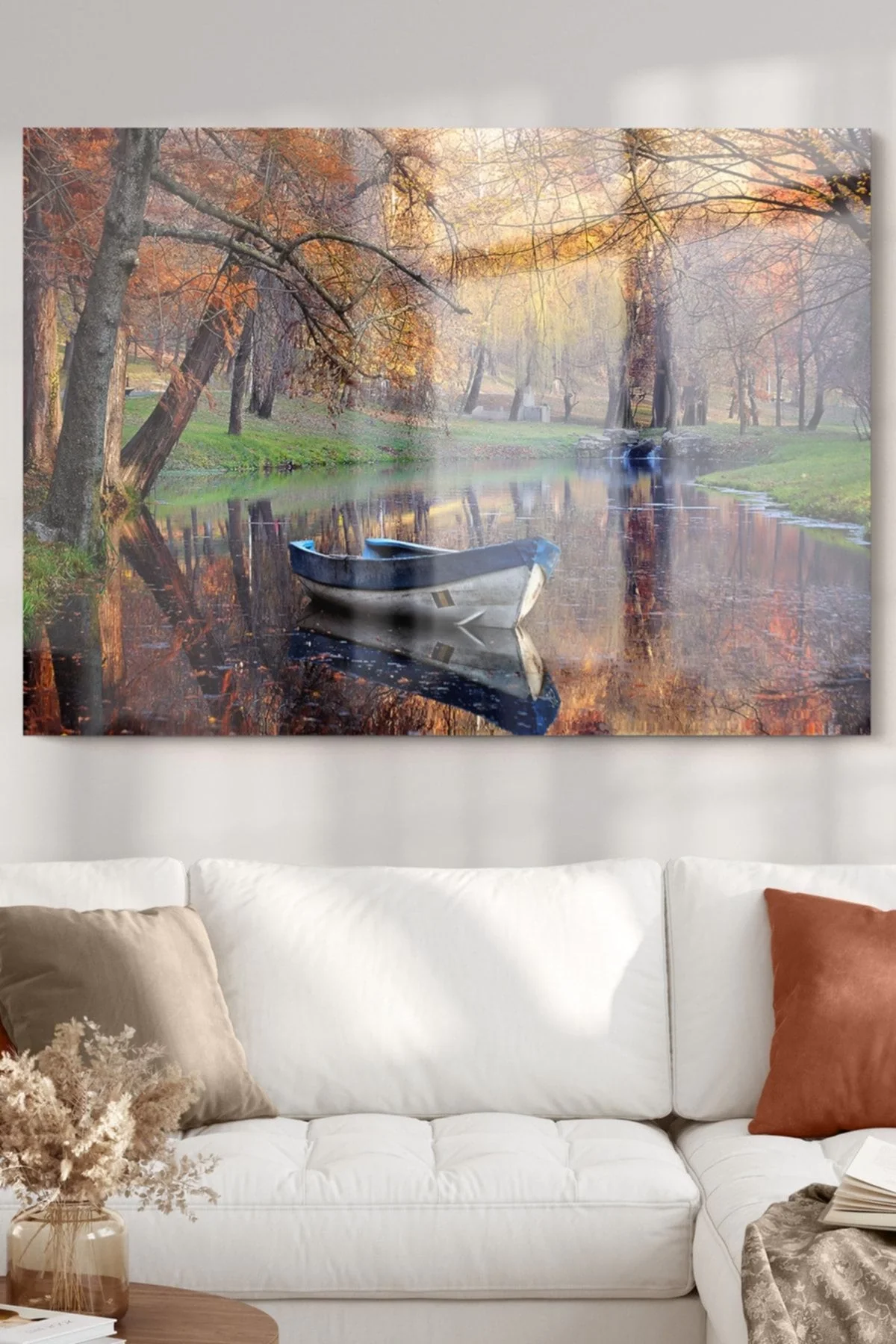 Autumn Forest And Boat | Nature Themed Glass Painting | 50x70cm