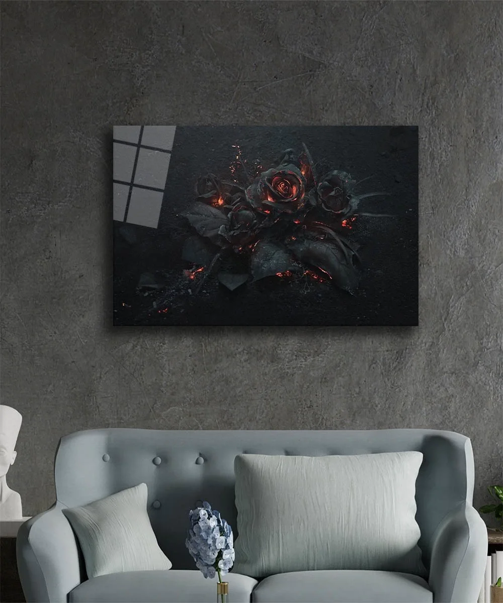TEKNOO- Black Flower Illustration Glass Painting