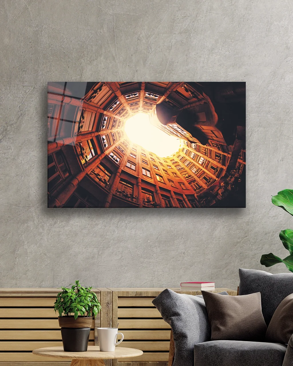 TEKNOO- Geometric Orange Building 4mm Glass Painting Durable