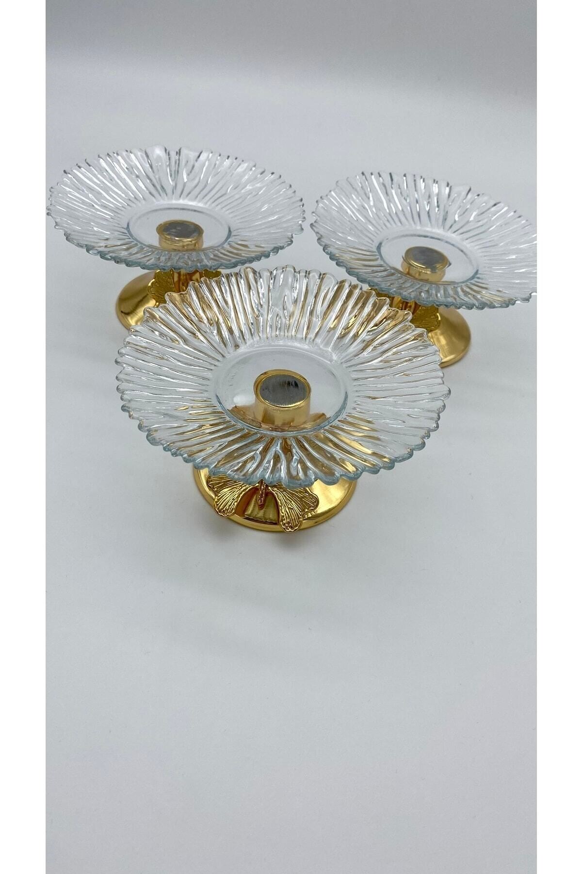3-Piece Butterfly Footed Gold Glass Turkish Delight Bowl, Sugar Bowl, Snack Bowl, Coffee Serving Bowl 13cm