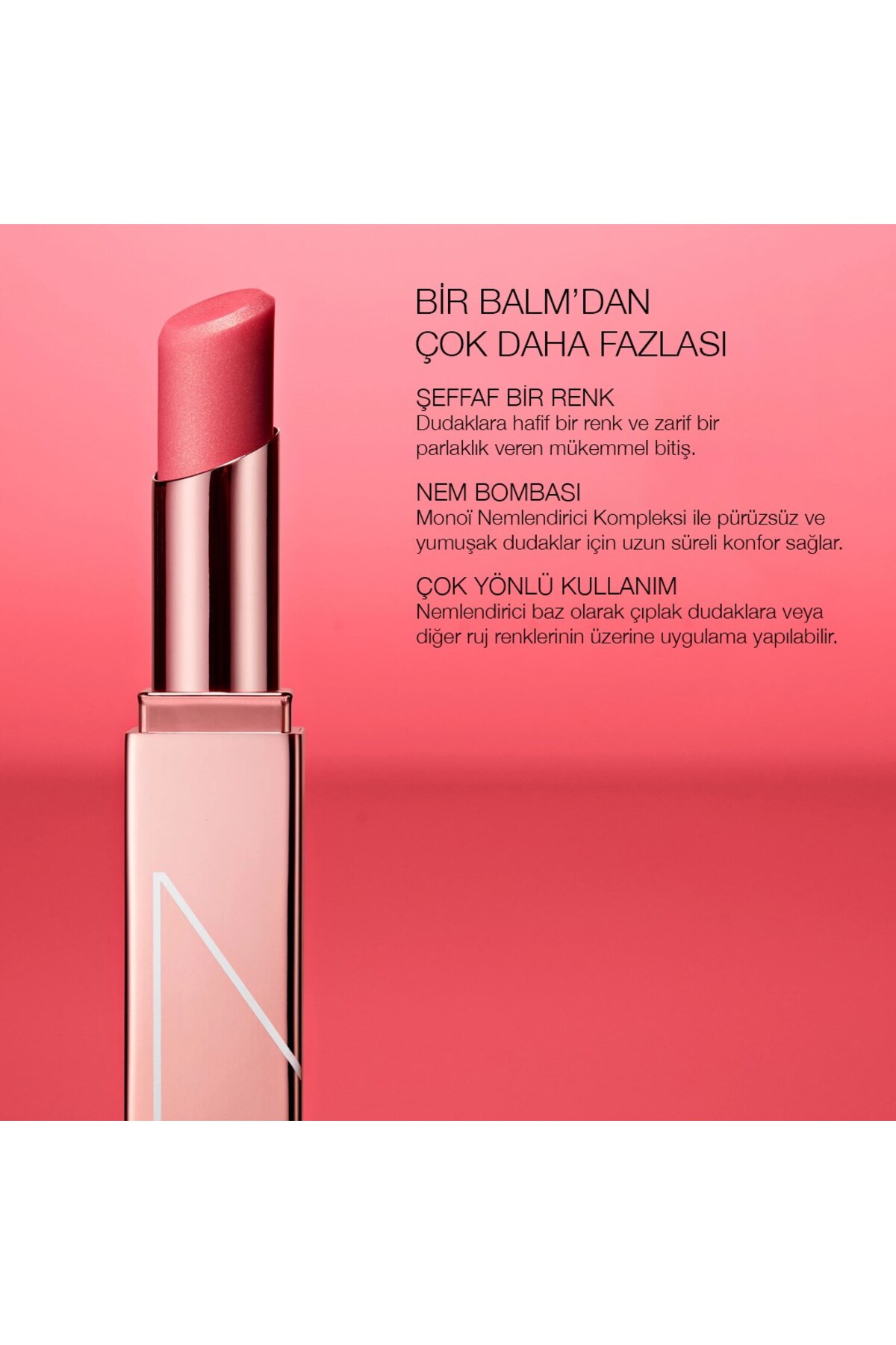 Pamper your lips with the shine and smoothing effect of NARS' iconic color Laguna. Contains Monoï Moisturizing Complex for smooth, soft lips and a blend of antioxidants to help protect lips. Vegan: Products made with naturally derived ingredients. Use Afterglow Lip Balm for a soft, lightweight color on bare lips or as a moisturizing base under any lipstick. Apply to use. Apply as a finishing coat over your lipstick for more shine and sharp highlights. For a natural shine without reflection, apply Afterglow Lip Lip Balm to your cheekbones with your fingertips. , POLYETHYLENE, MICROCRYSTALLINE WAX, DIISOSTEARYL MALATE, COCOS NUCIFERA (COCONUT) OIL, TOCOPHEROL, GARDENIA TAITENSIS FLOWER EXTRACT, TOCOPHERYL ACETATE, SIMMONDSIA CHINENSIS (JOJOBA) SEED OIL, PUNICA GRANATUM FLOWER EXTRACT, POLYSILICONE-2, GLYCE RYL DIISOSTEARATE, SIMETHICONE, TRIMETHYLOLPROPANE TRIETHYLHEXANOATE , LAURYL PCA, METHICONE, TETRADECENE, TIN OXIDE, BHT, SILICA, ALUMINUM HYDROXIDE, PHENOXYETHANOL, TITANIUM DIOXIDE, IRON OXIDES, RED 7 LAKE.
