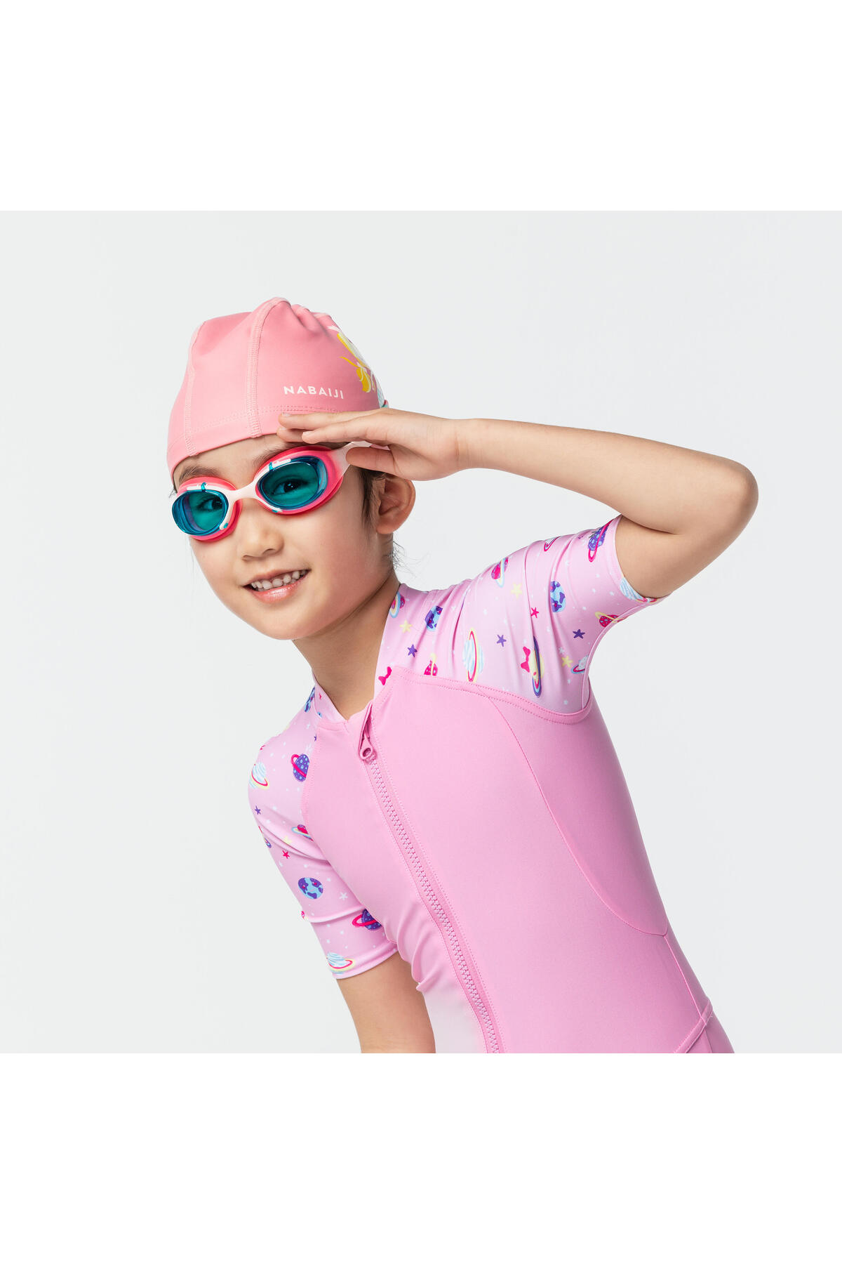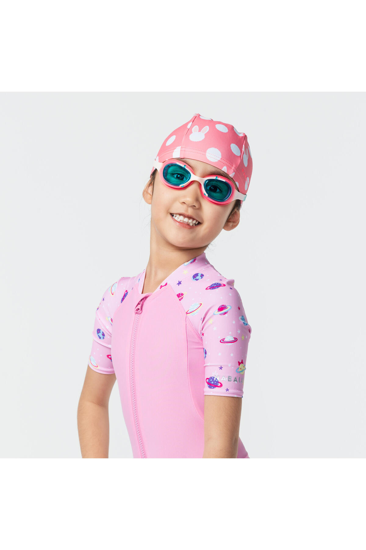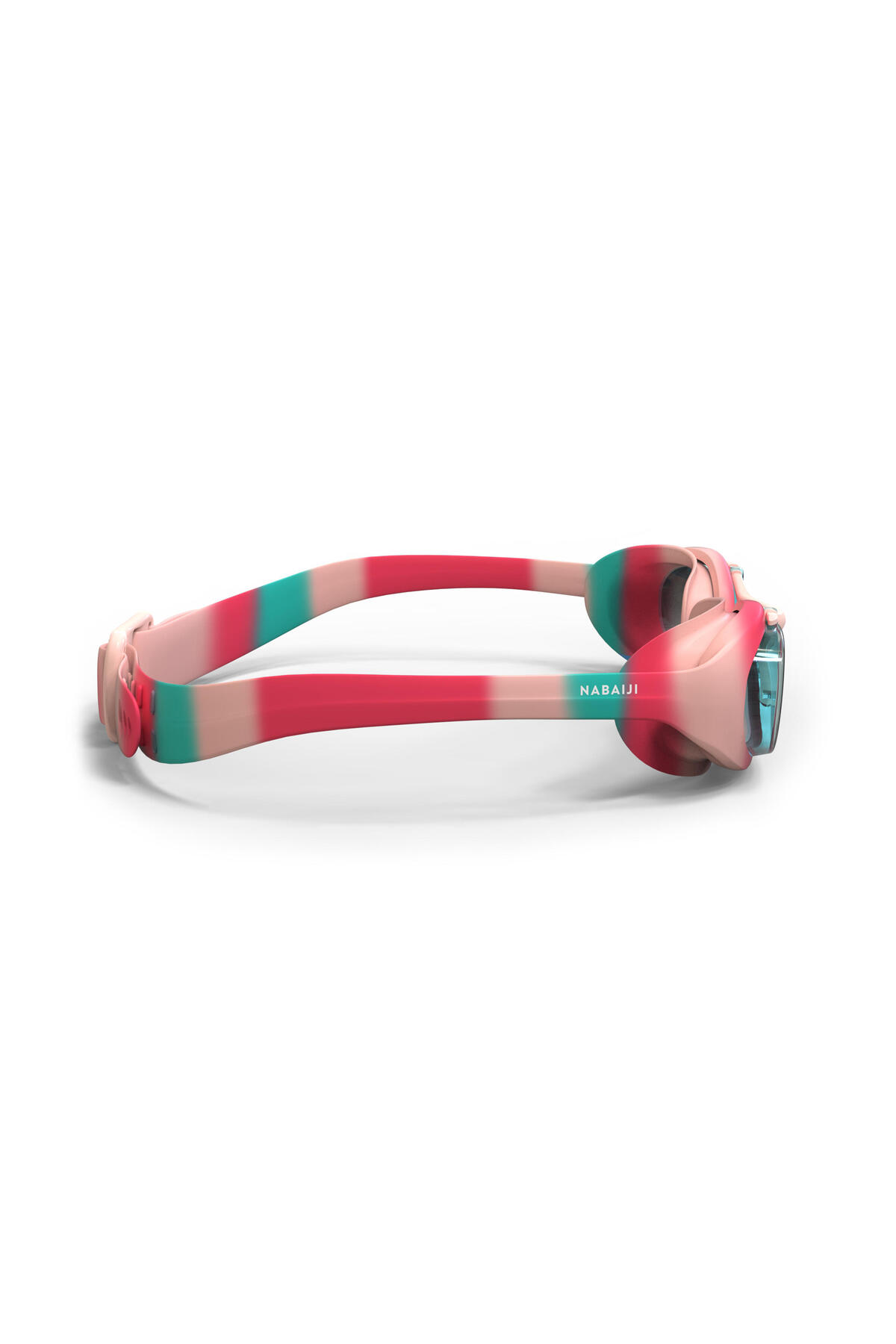 COLOR: PINK PRODUCT BENEFITS Anti-fog feature: Swim without your glasses fogging up, these glasses have an anti-fog feature. Adjustable structure: The nose bridge (S,M,L) is adjusted with numbered notched elastic and back buckle. Field of view: Enjoy an excellent 120°-140° field of view. Support: Provides excellent grip thanks to its small lenses. Waterproof: Flexible connections prevent water from entering the glasses. PRODUCT CONCEPT AND TECHNOLOGY PRODUCT COMPOSITION: Strap 100% Styrene Ethylene Butadiene Styrene Lens 100% Polycarbonate Buckles 100% Polyurethane STORAGE ADVICE: Store your swimming goggles in their case or in a plastic bag after use. Important: Do not touch the inner surface of the windows as this will damage their anti-fogging feature. USER INSTRUCTIONS: Do not touch the inner surface of the windows (this will destroy the anti-fog feature). CARE ADVICE: Rinse with clear water after use. Dry in a dry and airy place. TECHNICAL INFORMATION MIST FORMATION: Mist formation depends on many external factors such as the temperature difference between the water and the body and the humidity rate. Friction-related wear is one of the main reasons. If condensation occurs, immerse the windows in water to create a protective layer. Please note that after using the product for a while, its anti-fog feature will decrease. We recommend that you use an anti-fog pen that will renew the anti-fog feature of your glasses and extend their lifespan. ; SIZE SELECTION: Water tightness is achieved by the silicone body perfectly adapting to the shape of the face. Before purchasing the product, we recommend that you perform the "vacuum" test without wearing the elastic strap on your head. If the glasses stay on your face without a strap, with a slight vacuum feeling, without slipping, they will not leak water during swimming training. Thus, you can see the areas that the glasses may disturb or understand whether the product model is suitable for your face. This model is available in S (thin face) and L sizes. ; HOW TO ADJUST MY GLASSES: Glasses that adapt to your face type and do not need to be tightened too much. Glasses that are too tight cause discomfort to the wearer, leave marks on the face, and may even absorb water. You do not need to press your goggles with your hands; a slight vacuum effect is usually sufficient for swimming without water getting in. The straps usually pass 2 to 3 centimeters above the ear. Thus, the glasses do not slip and provide comfort. ; MAINTENANCE - WARNINGS: We recommend the following: - wash your glasses only when necessary, by immersing them in water - avoid using a strong hose to spray water on the inside of the lenses. - After each workout, store your glasses in their case to prevent damage to the inner lenses and scratches on the outer lenses. - Avoid exposure to temperatures of 60°C and above. DO NOT TOUCH OR SCRATCH THE INNER FACE OF YOUR GLASSES; UV PROTECTION: In accordance with the Q/BT 4734 - 2014 standard, all of Nabaiji's sunglasses provide protection against harmful UVA and UVB rays, regardless of the color of the lenses. Looking directly at the sun is dangerous and will irreversibly damage your eye lens. ;