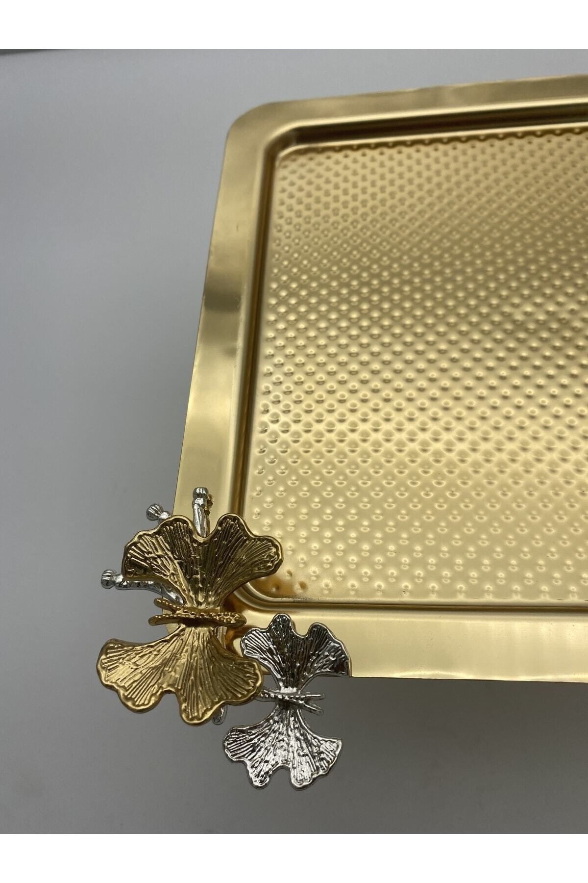 Footed Gold Square Metal Tea and Coffee Serving Tray, Cake, Cupcake, Cookie, Dowry Presentation Tray