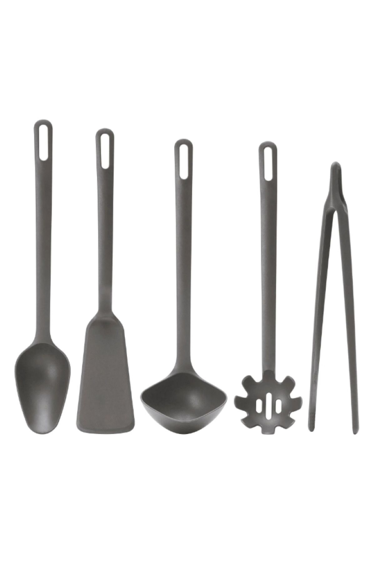 FULLÄNDAD Kitchen Utensil Set, Gray, 5 Pieces-Spatula, Spoon, Ladle, Pasta Spoon and Tongs