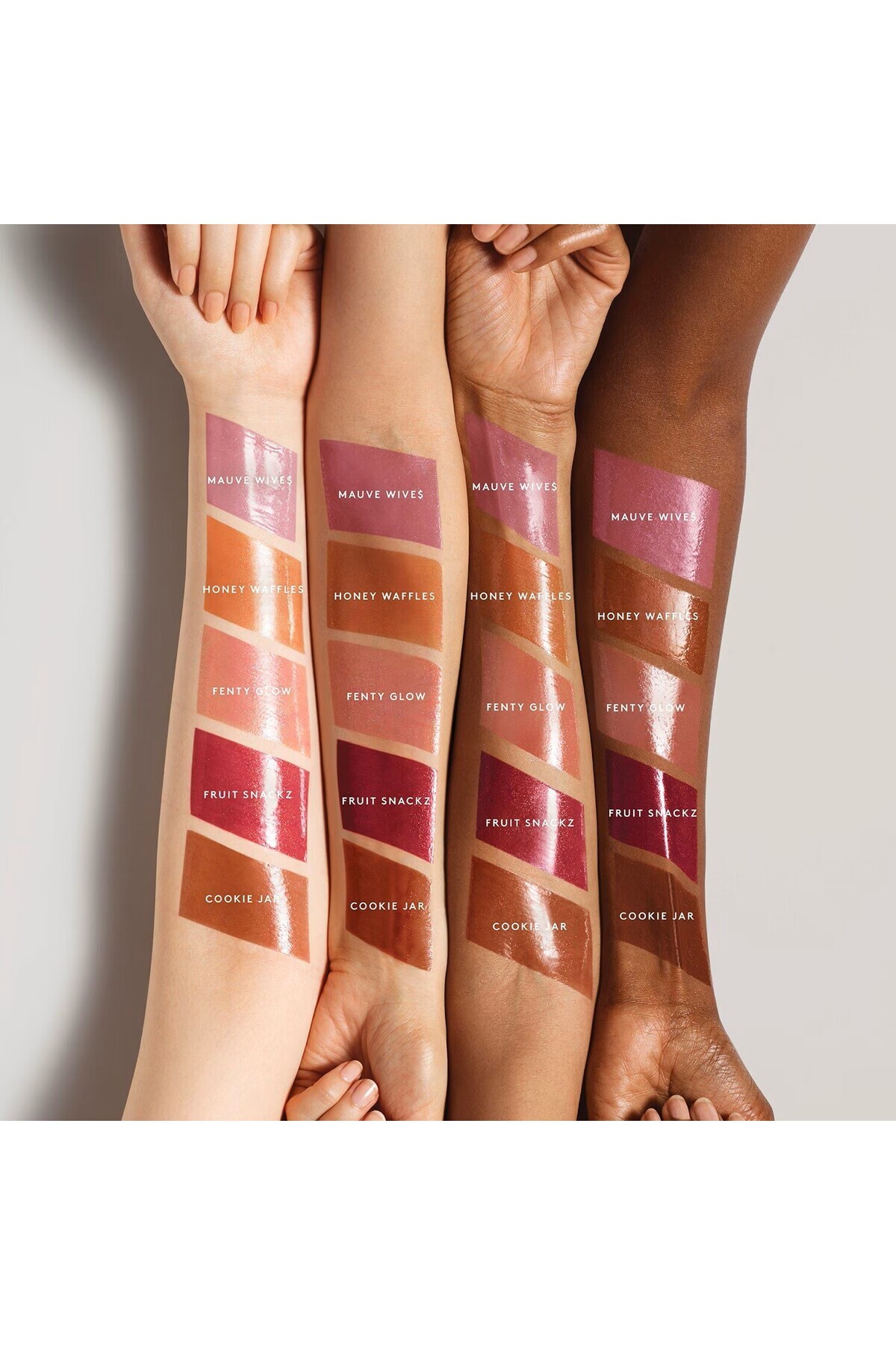 Fenty Beauty brightener – now with sheer, creamy colour, no shimmer and incredible polish-like shine. Lips look smoother and more voluminous. Your favorite feel-good, great-looking lip gloss now has medium to full coverage with zero shimmer. - Universally flattering, shimmer-free color in five creamy shades - Buildable full-intensity pigment - Lustrous shine - Non-sticky feel - XXL wand applies in just one swipe - Contains vitamin A - Light peachy vanilla scent