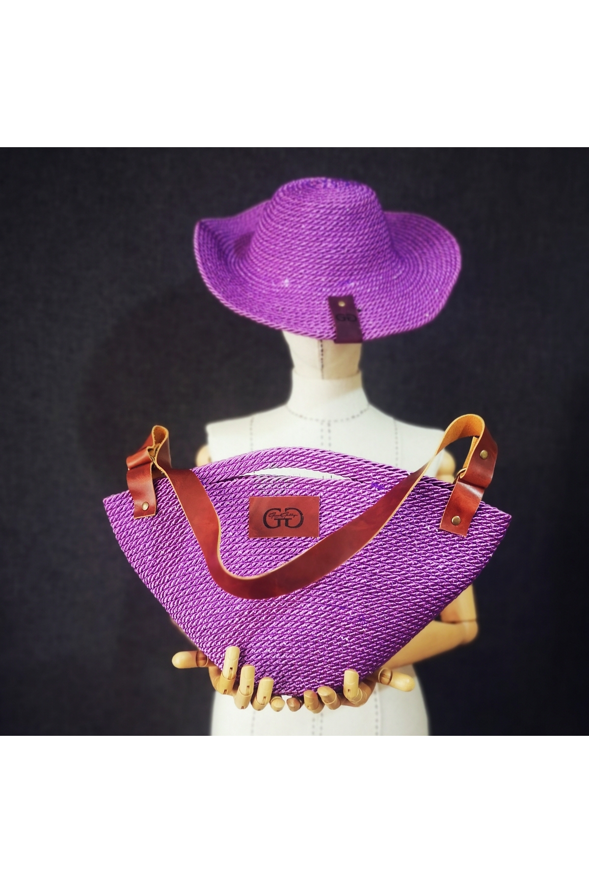 Handmade Genuine Leather Macrame Shoulder Bag Hat Set