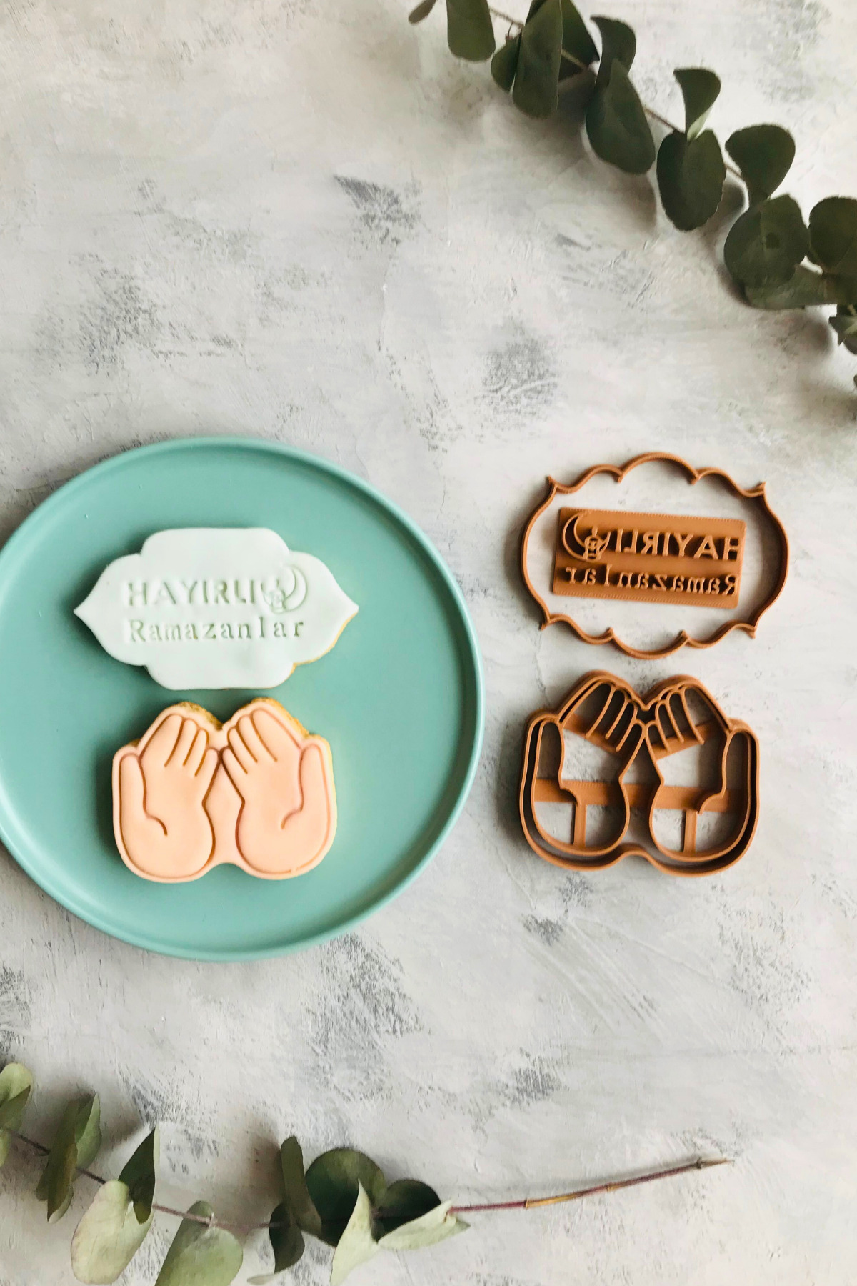 The praying hand measures 7x8 cm. Happy Ramadan is 6x10 cm in size. It is produced with environmentally friendly bioplastic that can be dissolved in nature in a short time. You can use it to shape dough such as Cookie Dough, Sugar Dough, Ceramic Dough, Polymer Clay Dough, Play Dough, and Baked Pancakes. It should not be exposed to temperatures above 50 degrees. It should be washed before use. It should not be put in the oven or dishwasher. It should be hand washed. You can play educational games that improve motor skills with your children or students, and prepare different entertaining presentations for your loved ones. You can consider it as a gift option. We recommend that you use the mold dry and by dipping it in flour. A tried and popular cookie recipe is sent along with the mold.