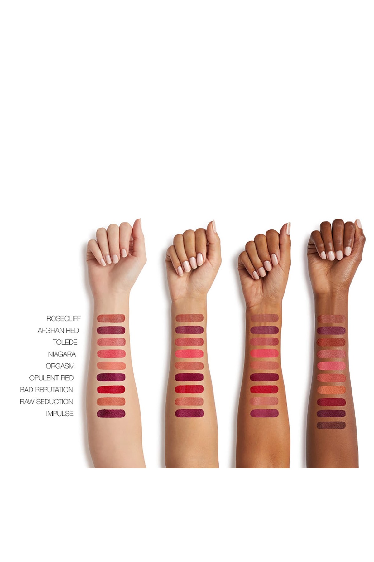 Color Range: The widest color range in NARS' lipstick category. It offers 60 fascinating shades, matte, satin and sparkling finishes. Innovative Formula: With its light structure, it provides a smooth and long-lasting feeling of comfort in all finishes and even in dark colors. Important ingredients: It revitalizes the skin with its formula containing Passion Fruit Seed Oil, and increases and protects the color quality with Moringa Fruit Seed Oil. New Packaging: All colors feature exclusive soft-touch black matte packaging and the white NARS logo.