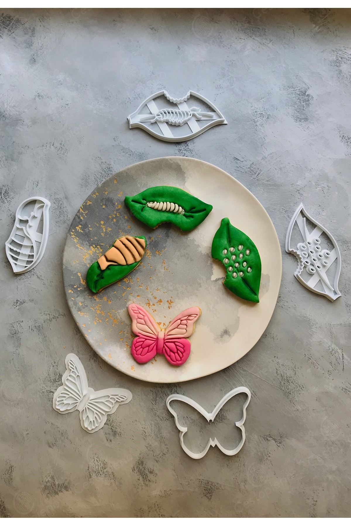 Life Cycle of the Butterfly Set of 4 Dough Shaper / Cookie / Ceramic / Game / Polymer