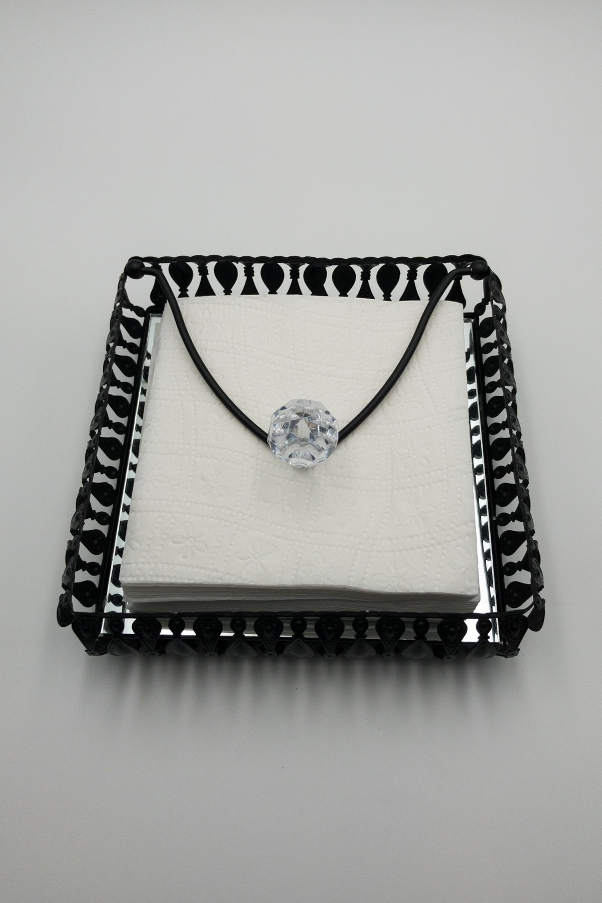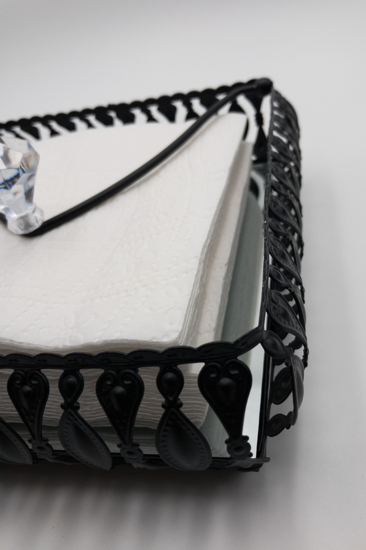 Matte black metal square mirrored napkin holder that will add elegance to your tables and color your presentations. ; The product base is a 3 mm mirror. ; Product dimensions: Width/length: 20 cm- Height: 5 cm. ;