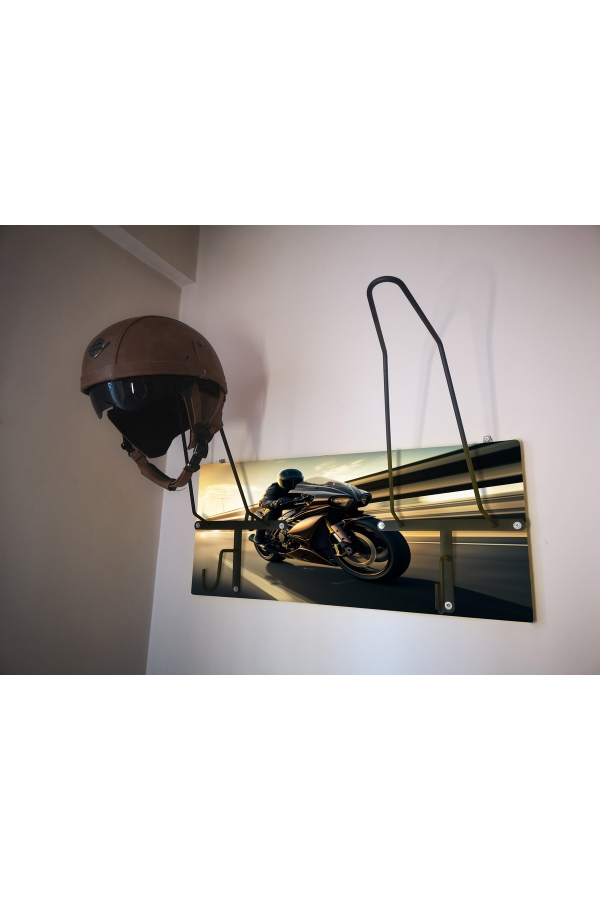 SPECIAL HELMET HANGER, COAT RACK, EQUIPMENT RACK FOR MOTORCYCLERS Product Features SPECIAL DESIGN THAT DOES NOT CONTACT THE PAD - Metal part angles and lengths are specially designed and do not come into contact with the protective pad inside the helmet. When you place your helmet correctly, it rests on the visor upper gap and the upper part of the neck, allowing your helmet to lie flat as if it were on your head, without touching the pad. - The metal design of the helmet hangers is independent of the size of your helmet and is suitable for all sizes. - It is manufactured using 6mm Transmission iron. It does not bend or bend and is extremely durable. - Baked Electrostatic Black Matte Texture Painted. In this way, the metal parts do not scratch or rust and maintain their form for years. - Panels used in wooden models are made of BB - BC quality natural wood solid panels (models with smooth edges are X2-MP, Pine or Spruce) or specially cut from imported Russian pine and made of solid, one-piece natural wood panels (models with natural looking edges are X2-Natura). is manufactured. - Printed and illustrated models are Glossy 1st Class Canvas prints. The canvas print is placed on a wooden panel and stapled at the back. HELMET RACK, COAT RANGER and KEYRING RANGER - 2 cobra hooks are delivered with the product to hang your keys. You can mount these hooks at any point you want on the panel. - There is a hook on each metal part of the helmet hanger bars to hang your coat on the clothes hanger. Metal parts are delivered disassembled to prevent damage to the panel during shipping. You can mount it practically with 3 screws. Screws and washers are packaged within the product. EASY INSTALLATION Easy installation with two hangers on the back. All you have to do is place a dowel and two screws on the wall. You hang the product like a painting. Since the wall type is unknown, the screws and dowels to mount it on the wall are not included in the package. Product Dimensions SINGLE HANGERS - 30X50cm back panel size. DOUBLE HANGERS - 30x70cm back wood panel size. ECO MODEL - 10x50cm back wood panel size. PERSONALIZATION - If personalization is desired on the panel, NAME-SURNAME, LOGO or NICKNAME can be engraved with CNC Laser, free of charge, in the lower left corner. - If orders come from sales channels, Genuine Leather is personalized and added to the package. You can easily stick it to any corner of the panel you want. - Do not forget to send your photos in the appropriate resolution and format for our hangers prepared as canvas prints. IN CASE OF SHIPPING AND DAMAGE - Although it is a very, very rare situation that we encounter the product being damaged in shipping, we kindly ask you to please contact us. We always deliver a new one to replace the damaged part. - It is very important for you to spare time for your damaged cargo and keep a cargo damage report so that our efforts do not go to waste. Even if there is no report, we will definitely resolve your grievance. GGART DECORATION - GGART HANDMADE
