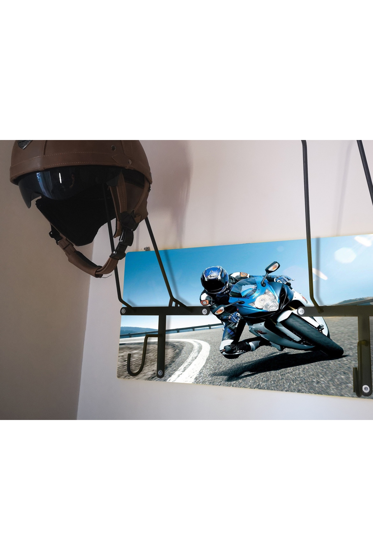 SPECIAL HELMET HANGER, COAT RACK, EQUIPMENT RACK FOR MOTORCYCLERS Product Features SPECIAL DESIGN THAT DOES NOT CONTACT THE PAD - Metal part angles and lengths are specially designed and do not come into contact with the protective pad inside the helmet. When you place your helmet correctly, it rests on the visor upper gap and the upper part of the neck, allowing your helmet to lie flat as if it were on your head, without touching the pad. - The metal design of the helmet hangers is independent of the size of your helmet and is suitable for all sizes. - It is manufactured using 6mm Transmission iron. It does not bend or bend and is extremely durable. - Baked Electrostatic Black Matte Texture Painted. In this way, the metal parts do not scratch or rust and maintain their form for years. - Panels used in wooden models are made of BB - BC quality natural wood solid panels (models with smooth edges are X2-MP, Pine or Spruce) or specially cut from imported Russian pine and made of solid, one-piece natural wood panels (models with natural looking edges are X2-Natura). is manufactured. - Printed and illustrated models are Glossy 1st Class Canvas prints. The canvas print is placed on a wooden panel and stapled at the back. HELMET RACK, COAT RANGER and KEYRING RANGER - 2 cobra hooks are delivered with the product to hang your keys. You can mount these hooks at any point you want on the panel. - There is a hook on each metal part of the helmet hanger bars to hang your coat on the clothes hanger. Metal parts are delivered disassembled to prevent damage to the panel during shipping. You can mount it practically with 3 screws. Screws and washers are packaged within the product. EASY INSTALLATION Easy installation with two hangers on the back. All you have to do is place a dowel and two screws on the wall. You hang the product like a painting. Since the wall type is unknown, the screws and dowels to mount it on the wall are not included in the package. Product Dimensions SINGLE HANGERS - 30X50cm back panel size. DOUBLE HANGERS - 30x70cm back wood panel size. ECO MODEL - 10x50cm back wood panel size. PERSONALIZATION - If personalization is desired on the panel, NAME-SURNAME, LOGO or NICKNAME can be engraved with CNC Laser, free of charge, in the lower left corner. - If orders come from sales channels, Genuine Leather is personalized and added to the package. You can easily stick it to any corner of the panel you want. - Do not forget to send your photos in the appropriate resolution and format for our hangers prepared as canvas prints. IN CASE OF SHIPPING AND DAMAGE - Although it is a very, very rare situation that we encounter the product being damaged in shipping, we kindly ask you to please contact us. We always deliver a new one to replace the damaged part. - It is very important for you to spare time for your damaged cargo and keep a cargo damage report so that our efforts do not go to waste. Even if there is no report, we will definitely resolve your grievance. GGART DECORATION - GGART HANDMADE