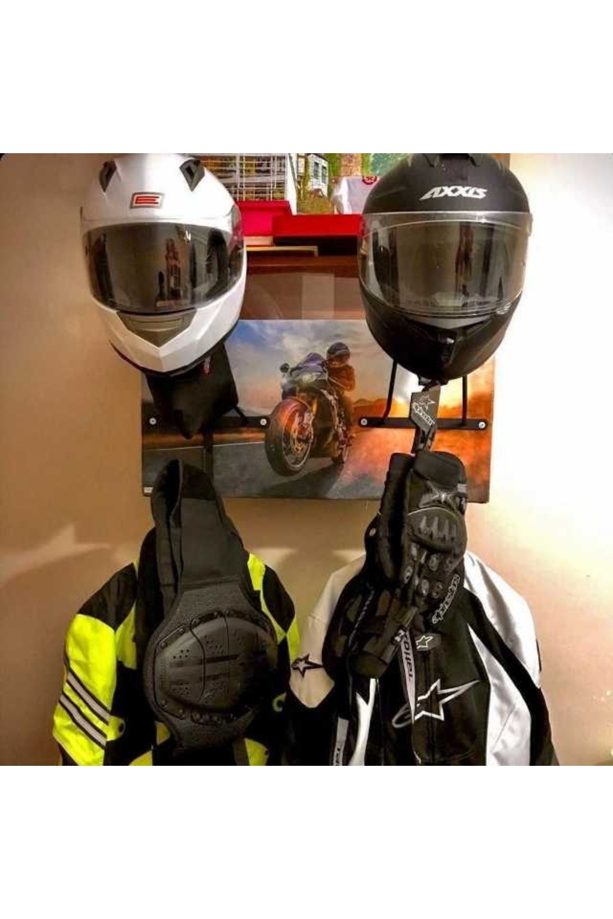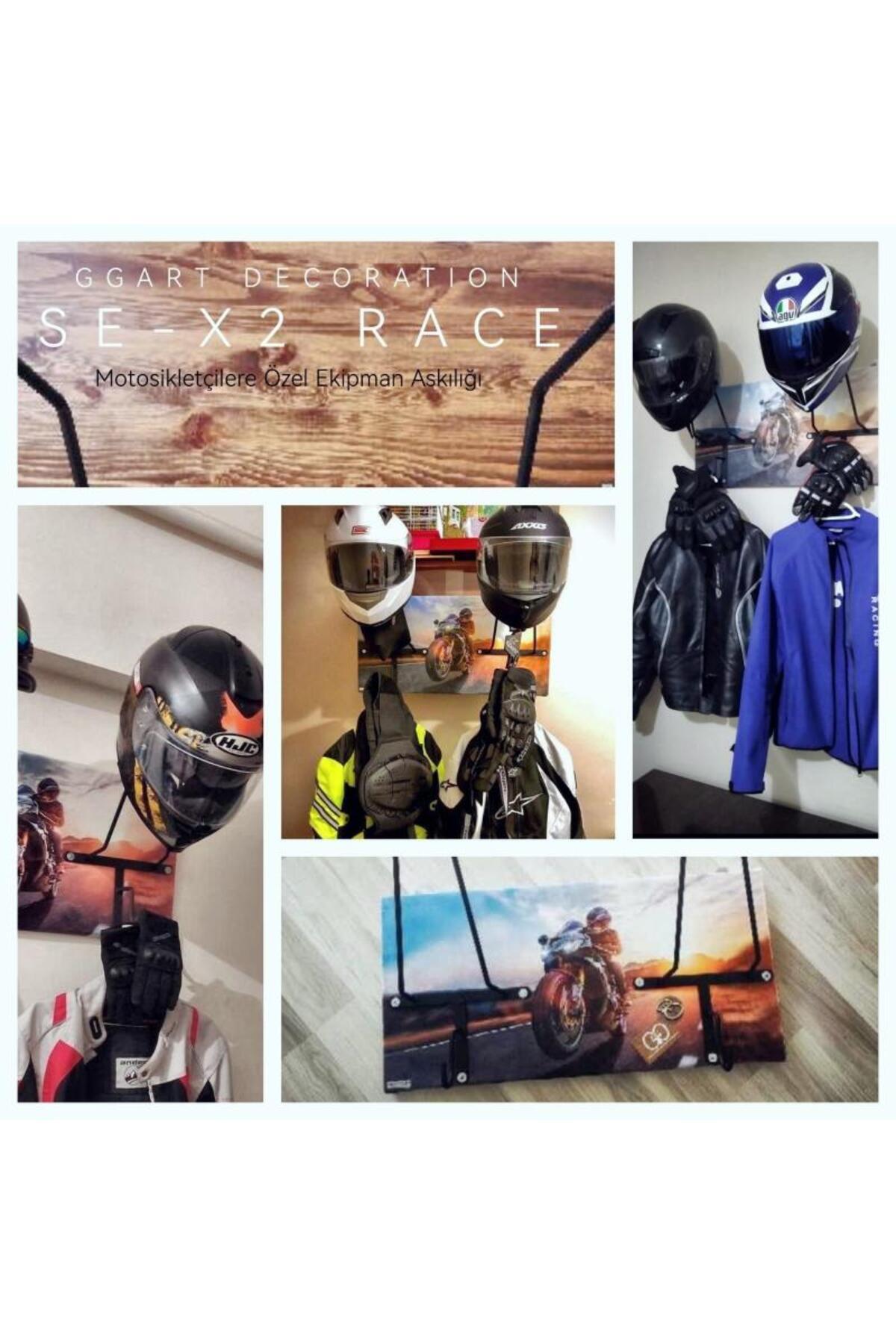 SPECIAL HELMET HANGER, COAT RACK, EQUIPMENT RACK FOR MOTORCYCLERS Product Features SPECIAL DESIGN THAT DOES NOT CONTACT THE PAD - Metal part angles and lengths are specially designed and do not come into contact with the protective pad inside the helmet. When you place your helmet correctly, it rests on the visor upper gap and the upper part of the neck, allowing your helmet to lie flat as if it were on your head, without touching the pad. - The metal design of the helmet hangers is independent of the size of your helmet and is suitable for all sizes. - It is manufactured using 6mm Transmission iron. It does not bend or bend and is extremely durable. - Baked Electrostatic Black Matte Texture Painted. In this way, the metal parts do not scratch or rust and maintain their form for years. - Panels used in wooden models are made of BB - BC quality natural wood solid panels (models with smooth edges are X2-MP, Pine or Spruce) or specially cut from imported Russian pine and made of solid, one-piece natural wood panels (models with natural looking edges are X2-Natura). is manufactured. - Printed and illustrated models are Glossy 1st Class Canvas prints. The canvas print is placed on a wooden panel and stapled at the back. HELMET RACK, COAT RANGER and KEYRING RANGER - 2 cobra hooks are delivered with the product to hang your keys. You can mount these hooks at any point you want on the panel. - There is a hook on each metal part of the helmet hanger bars to hang your coat on the clothes hanger. Metal parts are delivered disassembled to prevent damage to the panel during shipping. You can mount it practically with 3 screws. Screws and washers are packaged within the product. EASY INSTALLATION Easy installation with two hangers on the back. All you have to do is place a dowel and two screws on the wall. You hang the product like a painting. Since the wall type is unknown, the screws and dowels to mount it on the wall are not included in the package. Product Dimensions SINGLE HANGERS - 30X50cm back panel size. DOUBLE HANGERS - 30x70cm back wood panel size. ECO MODEL - 10x50cm back wood panel size. PERSONALIZATION - If personalization is desired on the panel, NAME-SURNAME, LOGO or NICKNAME can be engraved with CNC Laser, free of charge, in the lower left corner. - If orders come from sales channels, Genuine Leather is personalized and added to the package. You can easily stick it to any corner of the panel you want. - Do not forget to send your photos in the appropriate resolution and format for our hangers prepared as canvas prints. IN CASE OF SHIPPING AND DAMAGE - Although it is a very, very rare situation that we encounter the product being damaged in shipping, we kindly ask you to please contact us. We always deliver a new one to replace the damaged part. - It is very important for you to spare time for your damaged cargo and keep a cargo damage report so that our efforts do not go to waste. Even if there is no report, we will definitely resolve your grievance. GGART DECORATION - GGART HANDMADE
