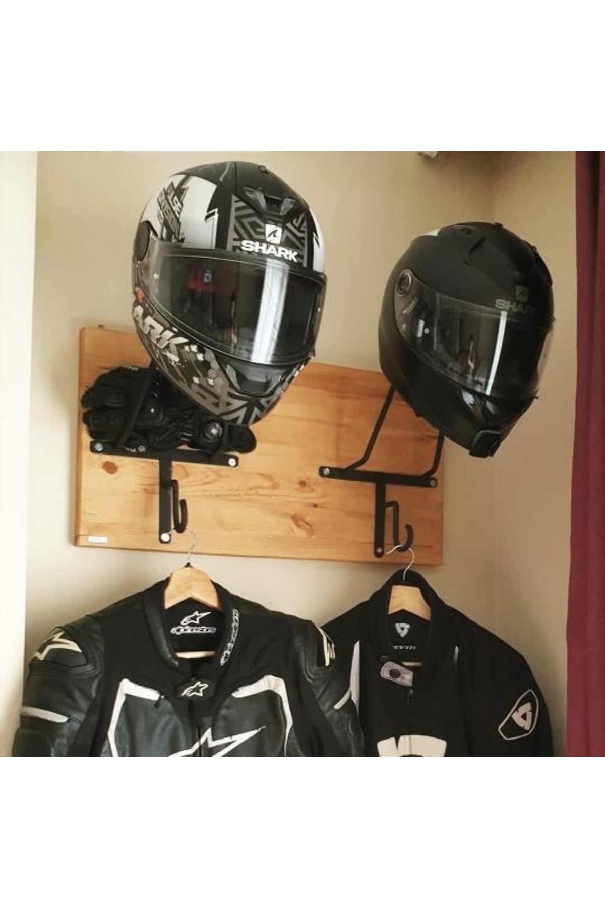 SPECIAL HELMET HANGER, COAT RACK, EQUIPMENT RACK FOR MOTORCYCLERS Product Features SPECIAL DESIGN THAT DOES NOT CONTACT THE PAD - Metal part angles and lengths are specially designed and do not come into contact with the protective pad inside the helmet. When you place your helmet correctly, it rests on the visor upper gap and the upper part of the neck, allowing your helmet to lie flat as if it were on your head, without touching the pad. - The metal design of the helmet hangers is independent of the size of your helmet and is suitable for all sizes. - It is manufactured using 6mm Transmission iron. It does not bend or bend and is extremely durable. - Baked Electrostatic Black Matte Texture Painted. In this way, the metal parts do not scratch or rust and maintain their form for years. - Panels used in wooden models are made of BB - BC quality natural wood solid panels (models with smooth edges are X2-MP, Pine or Spruce) or specially cut from imported Russian pine and made of solid, one-piece natural wood panels (models with natural looking edges are X2-Natura). is manufactured. - Printed and illustrated models are Glossy 1st Class Canvas prints. The canvas print is placed on a wooden panel and stapled at the back. HELMET RACK, COAT RANGER and KEYRING RANGER - 2 cobra hooks are delivered with the product to hang your keys. You can mount these hooks at any point you want on the panel. - There is a hook on each metal part of the helmet hanger bars to hang your coat on the clothes hanger. Metal parts are delivered disassembled to prevent damage to the panel during shipping. You can mount it practically with 3 screws. Screws and washers are packaged within the product. EASY INSTALLATION Easy installation with two hangers on the back. All you have to do is place a dowel and two screws on the wall. You hang the product like a painting. Since the wall type is unknown, the screws and dowels to mount it on the wall are not included in the package. Product Dimensions SINGLE HANGERS - 30X50cm back panel size. DOUBLE HANGERS - 30x70cm back wood panel size. ECO MODEL - 10x50cm back wood panel size. PERSONALIZATION - If personalization is desired on the panel, NAME-SURNAME, LOGO or NICKNAME can be engraved with CNC Laser, free of charge, in the lower left corner. - If orders come from sales channels, Genuine Leather is personalized and added to the package. You can easily stick it to any corner of the panel you want. - Do not forget to send your photos in the appropriate resolution and format for our hangers prepared as canvas prints. IN CASE OF SHIPPING AND DAMAGE - Although it is a very, very rare situation that we encounter the product being damaged in shipping, we kindly ask you to please contact us. We always deliver a new one to replace the damaged part. - It is very important for you to spare time for your damaged cargo and keep a cargo damage report so that our efforts do not go to waste. Even if there is no report, we will definitely resolve your grievance. GGART DECORATION - GGART HANDMADE